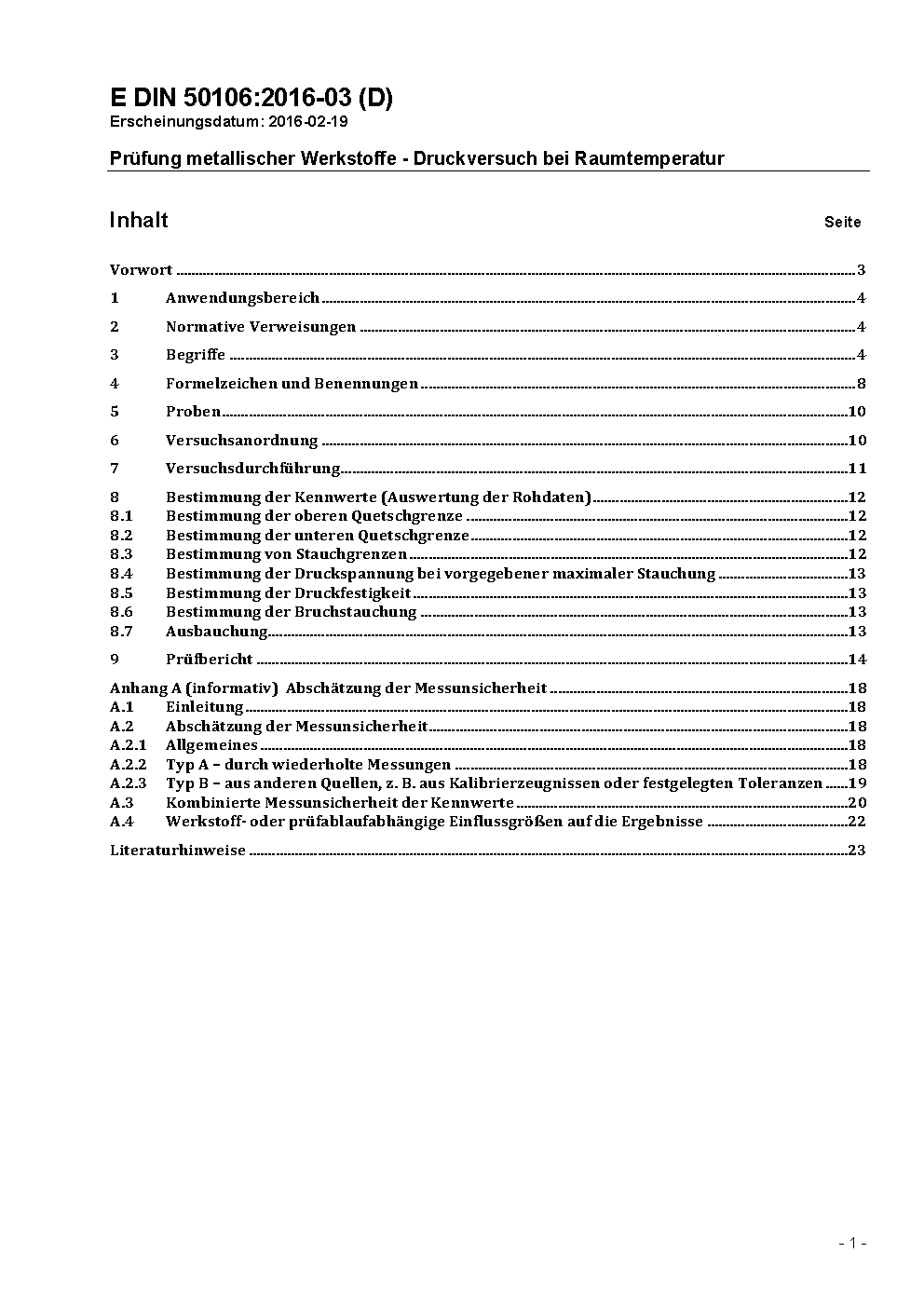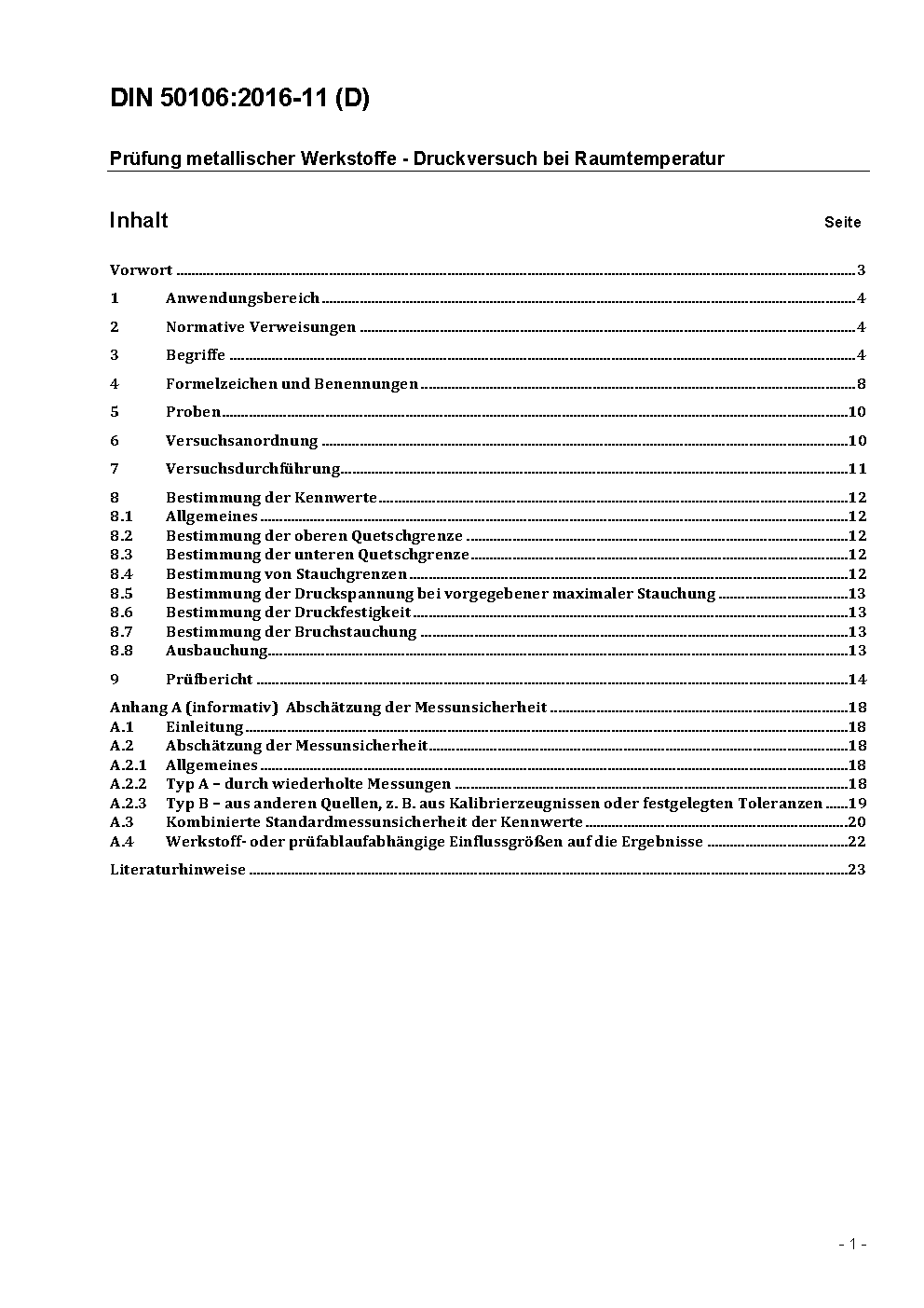 Prüfung metallischer Werkstoffe - Druckversuch bei Raumtemperatur