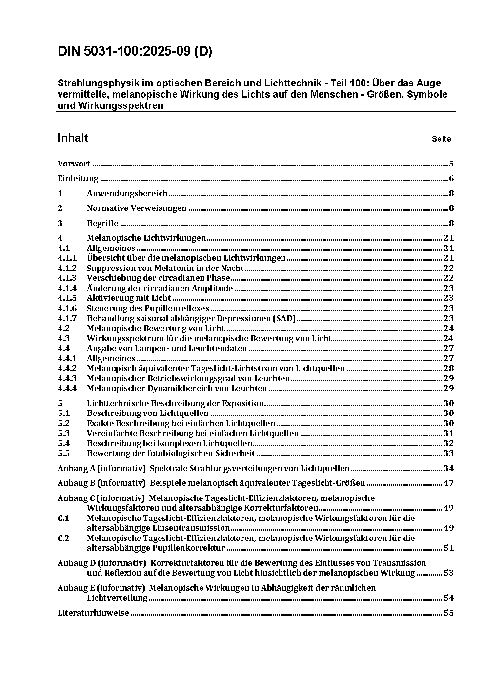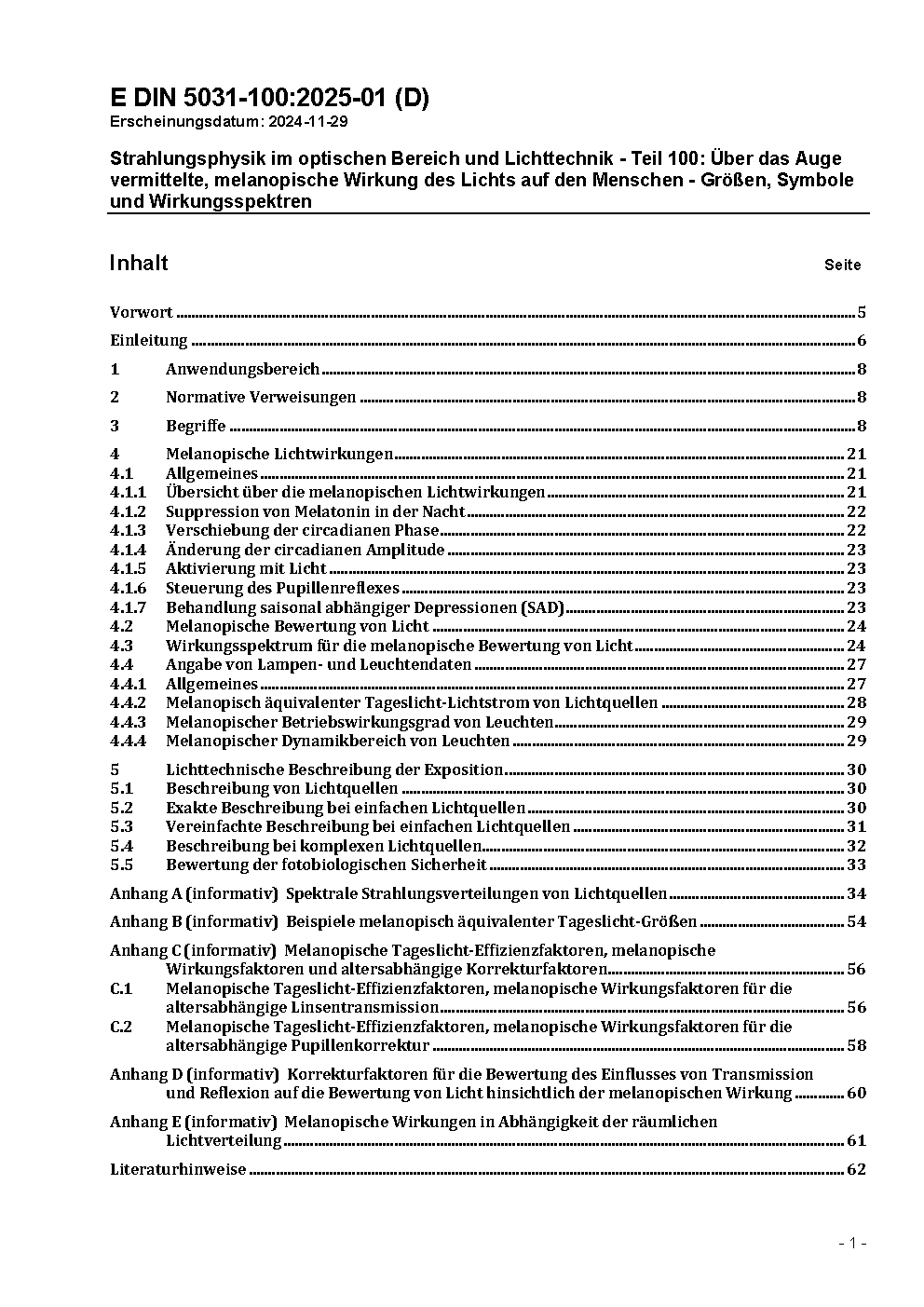 Strahlungsphysik im optischen Bereich und Lichttechnik - Teil 100: Über das Auge vermittelte, melanopische Wirkung des Lichts auf den Menschen - Größen, Symbole und Wirkungsspektren