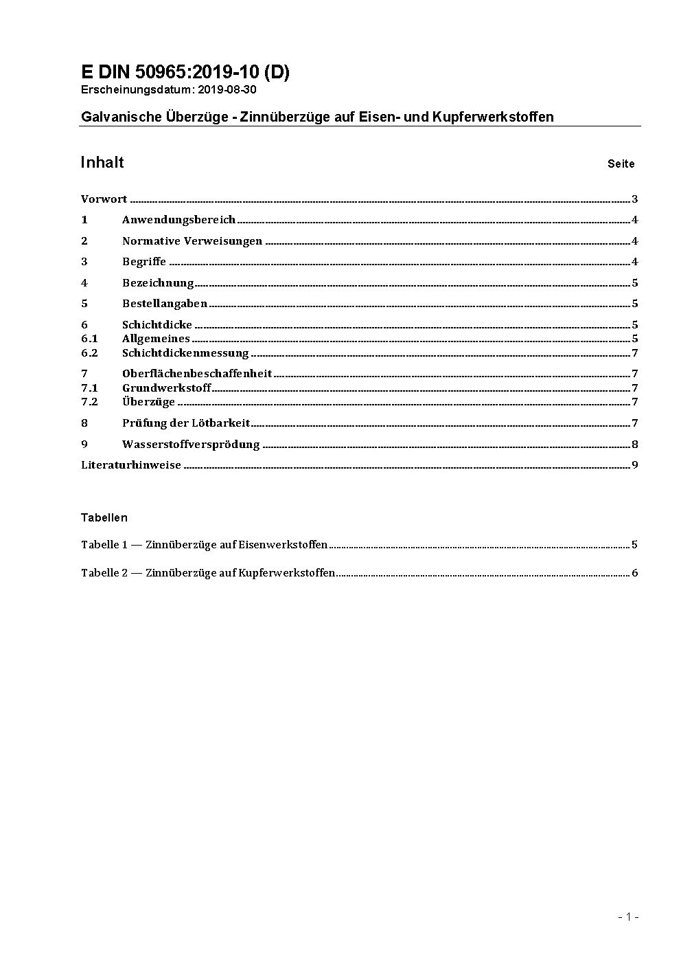 Galvanische Überzüge - Zinnüberzüge auf Eisen- und Kupferwerkstoffen