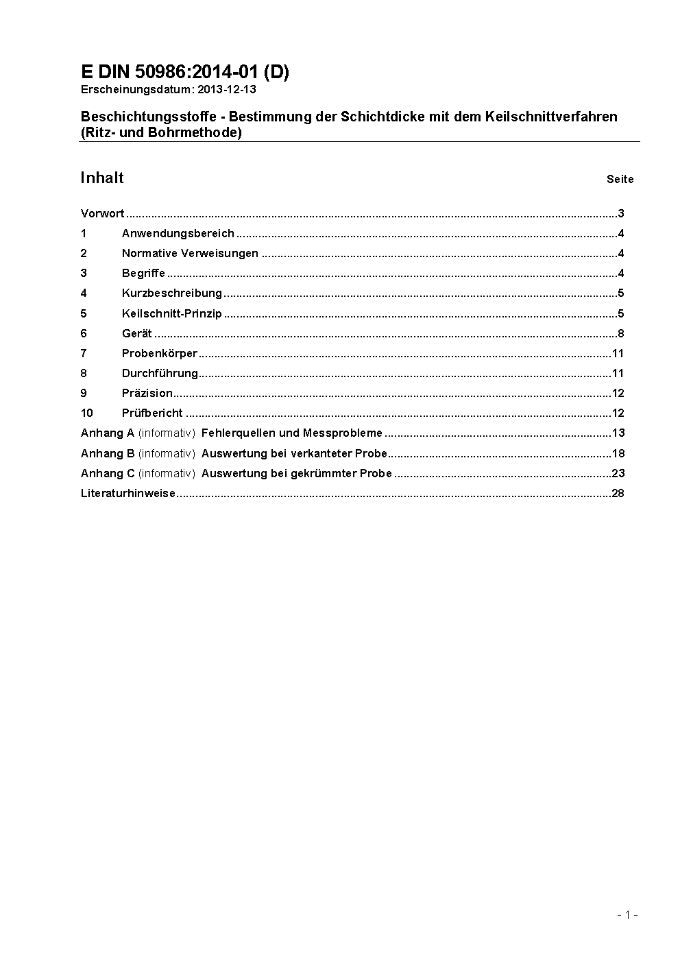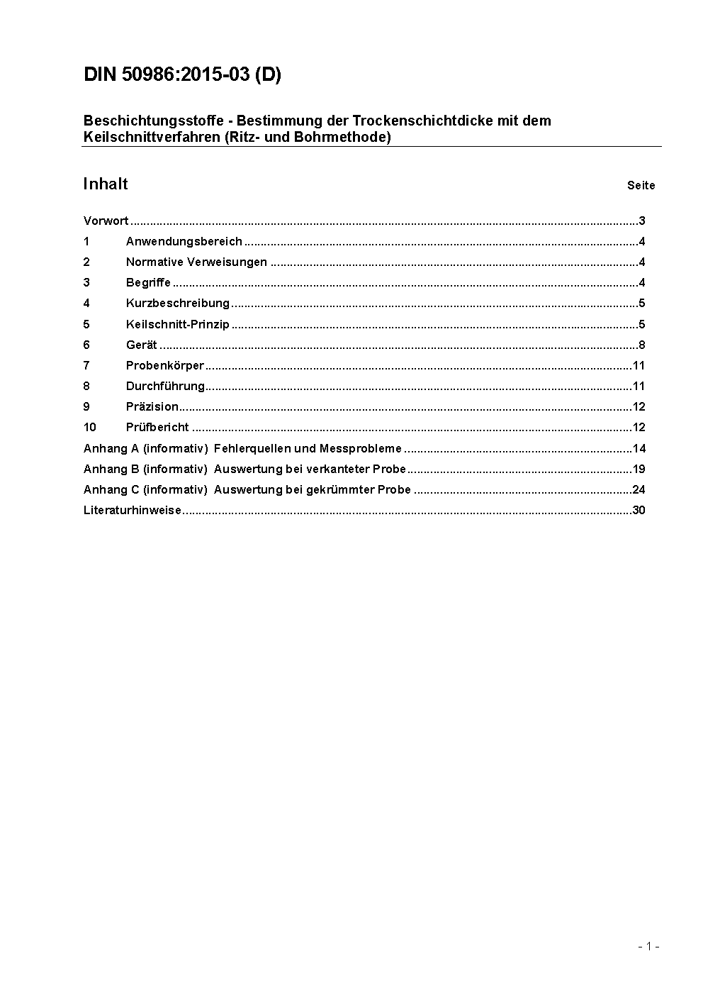Beschichtungsstoffe - Bestimmung der Trockenschichtdicke mit dem Keilschnittverfahren (Ritz- und Bohrmethode)