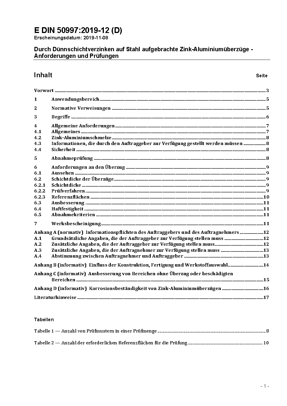 Durch Dünnschichtverzinken auf Stahl aufgebrachte Zink-Aluminiumüberzüge - Anforderungen und Prüfungen