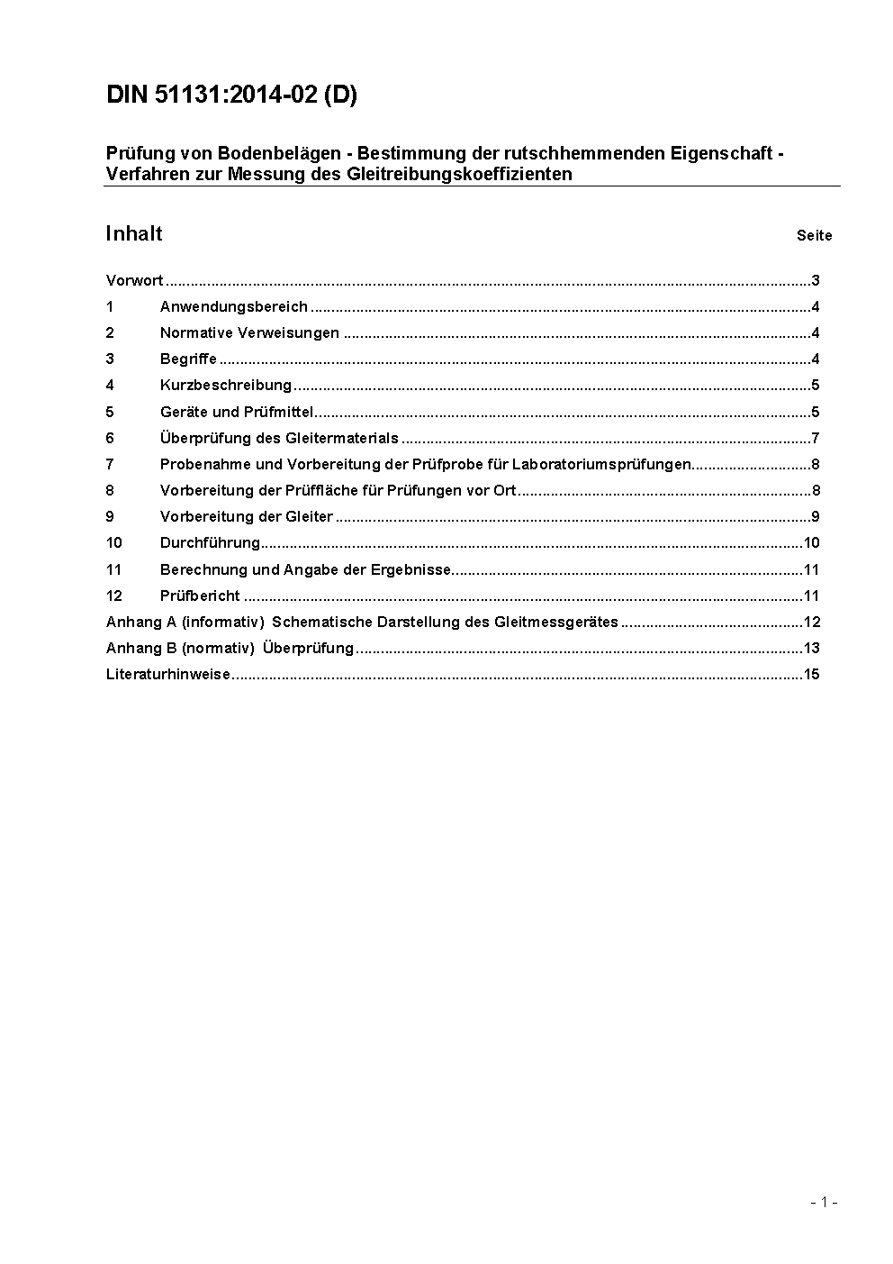 Prüfung von Bodenbelägen - Bestimmung der rutschhemmenden Eigenschaft - Verfahren zur Messung des Gleitreibungskoeffizienten