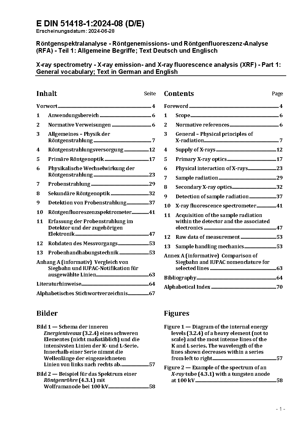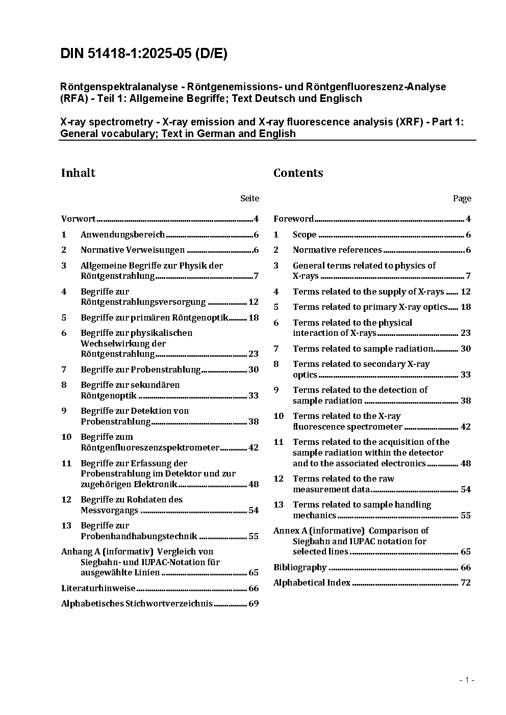 X-ray spectrometry - X-ray emission- and X-ray fluorescence analysis (XRF) - Part 1: Definitions and basic principles
