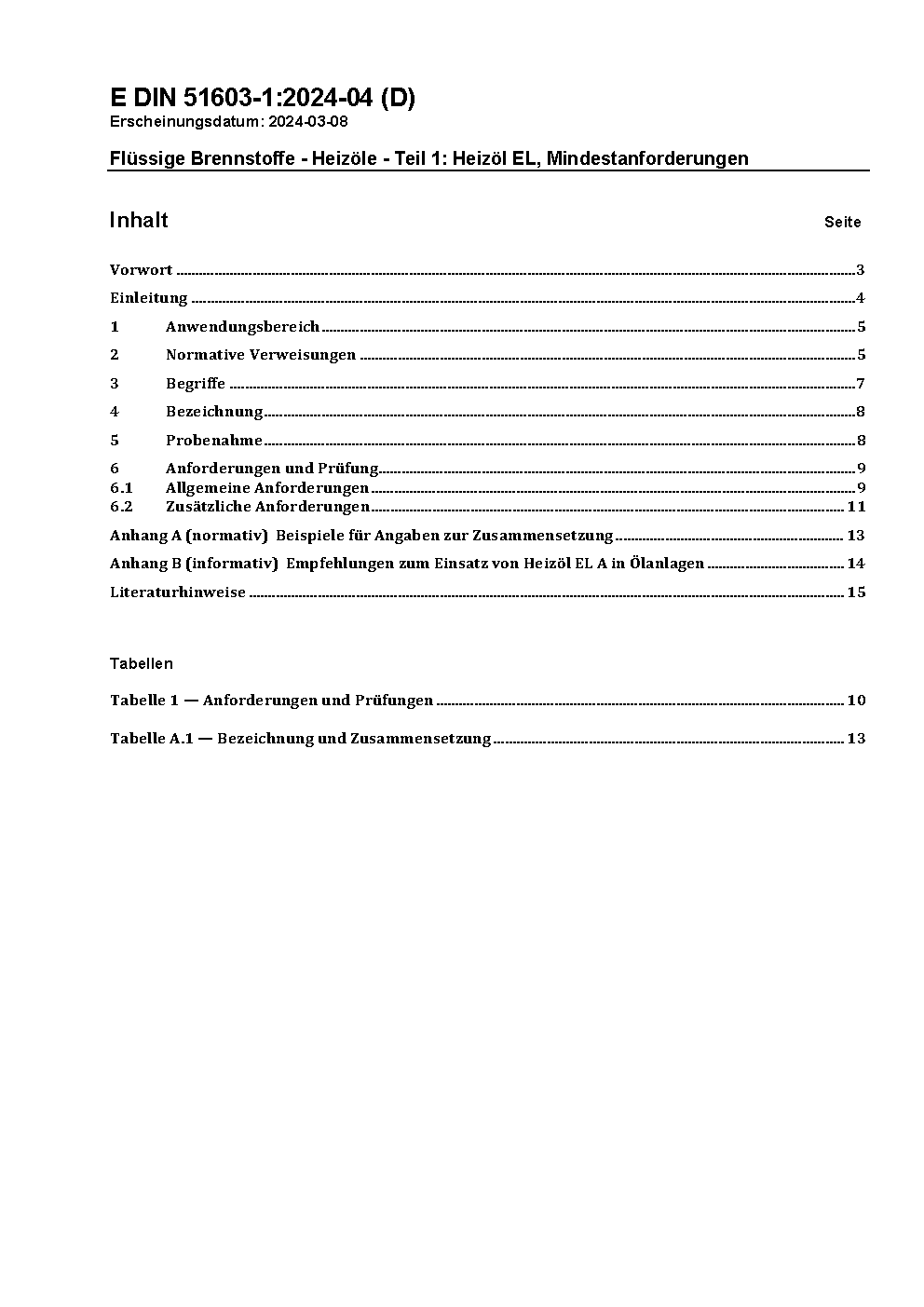 Flüssige Brennstoffe - Heizöle - Teil 1: Heizöl EL, Mindestanforderungen