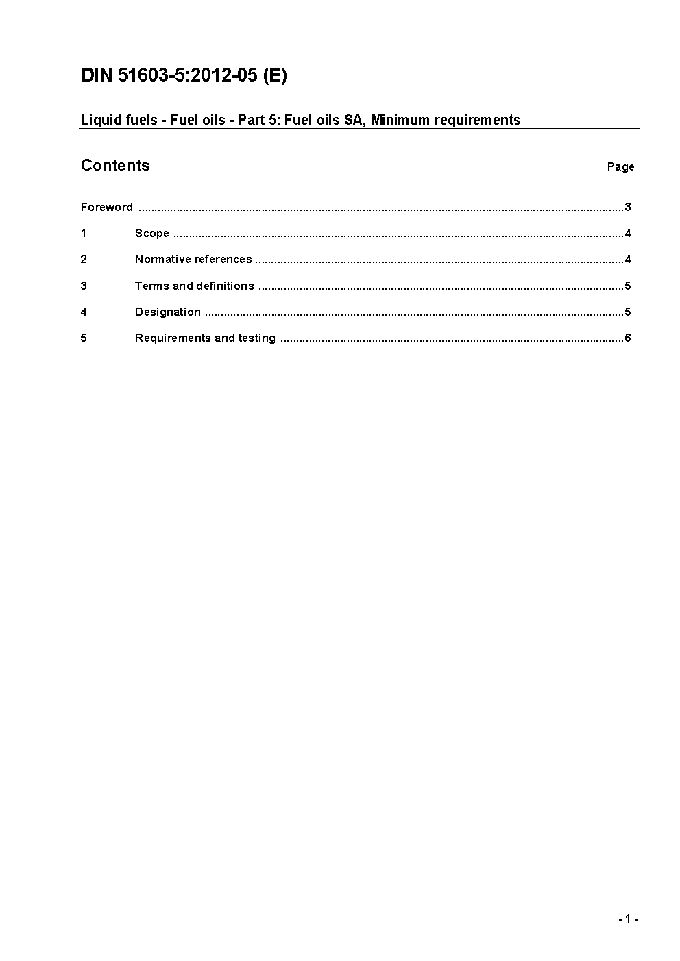 Liquid fuels - Fuel oils - Part 5: Fuel oils SA, Minimum requirements