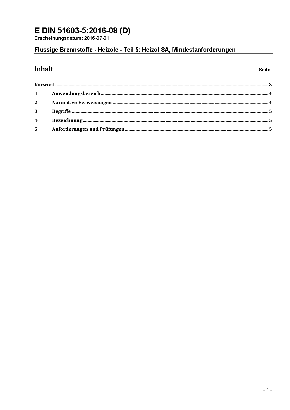 Flüssige Brennstoffe - Heizöle - Teil 5: Heizöl SA, Mindestanforderungen
