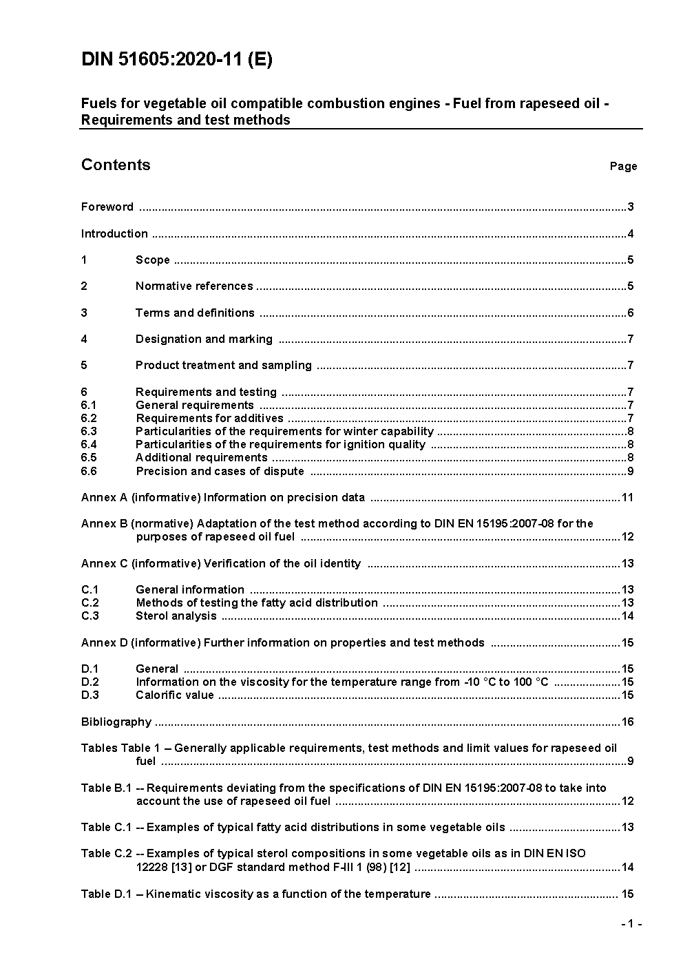 Fuels for vegetable oil compatible combustion engines - Fuel from rapeseed oil - Requirements and test methods