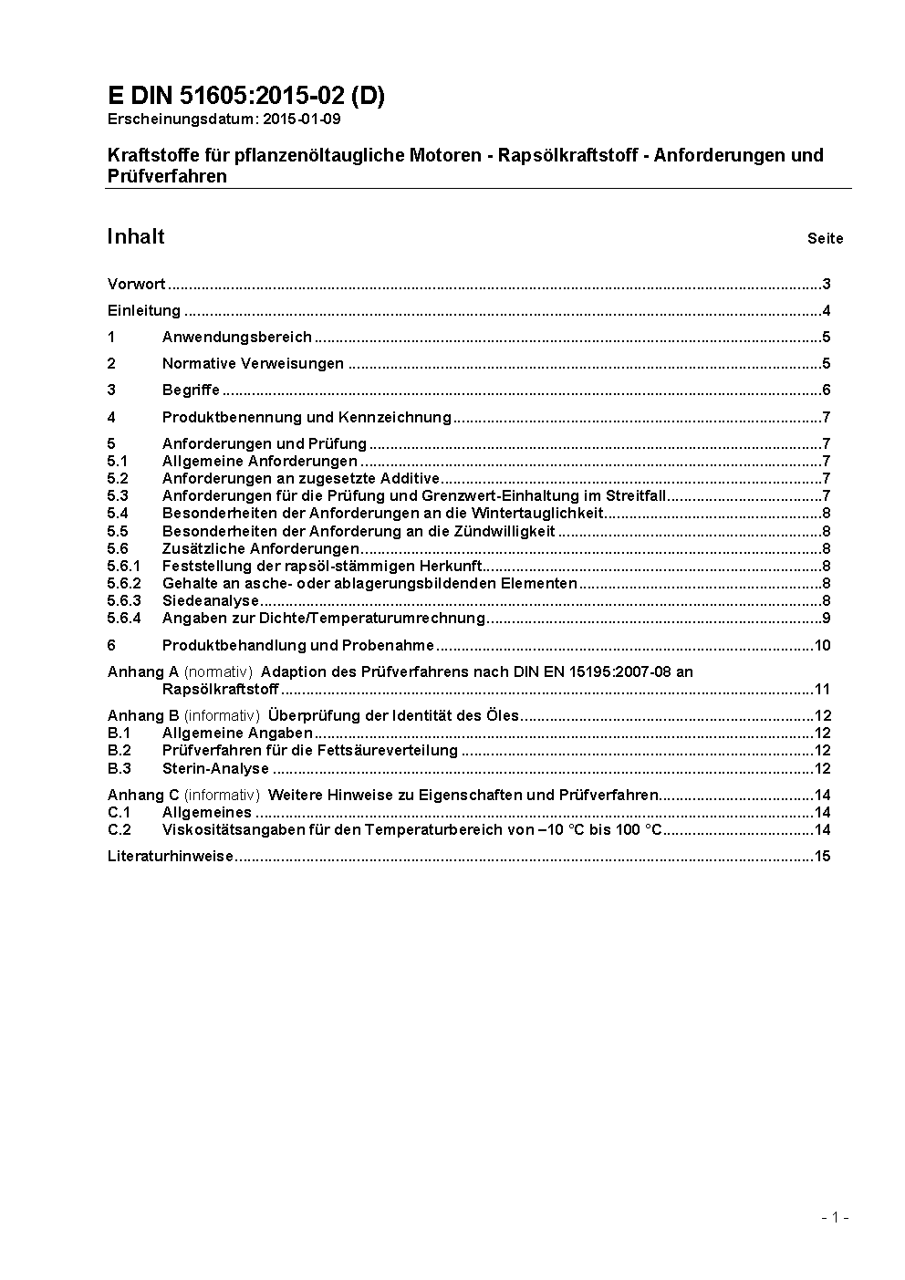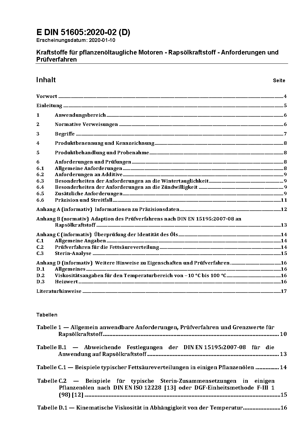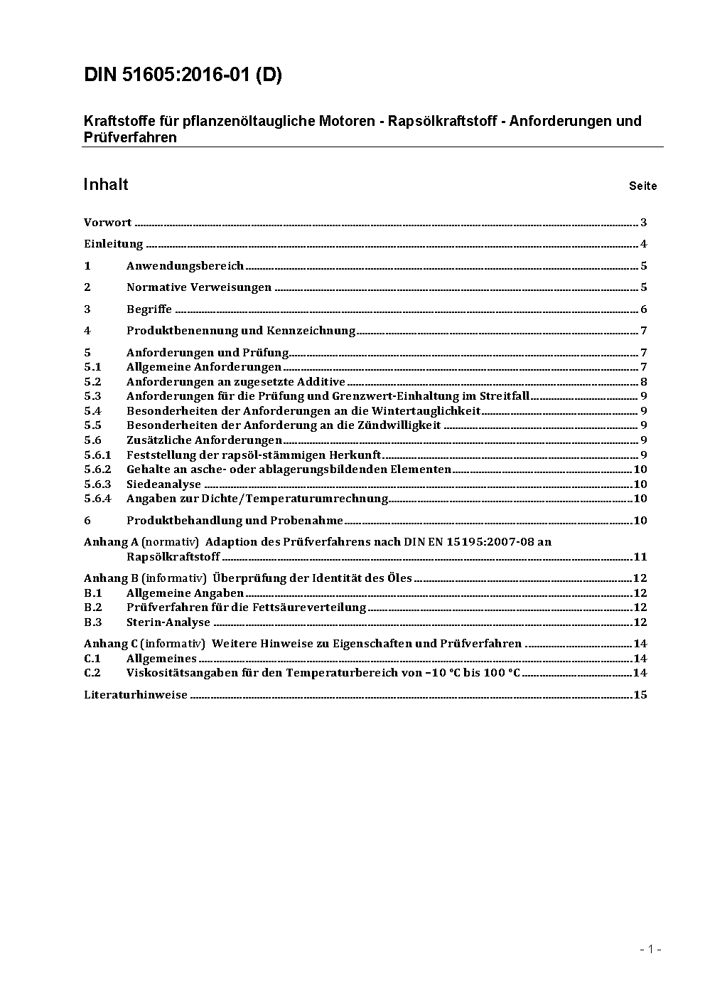 Kraftstoffe für pflanzenöltaugliche Motoren - Rapsölkraftstoff - Anforderungen und Prüfverfahren
