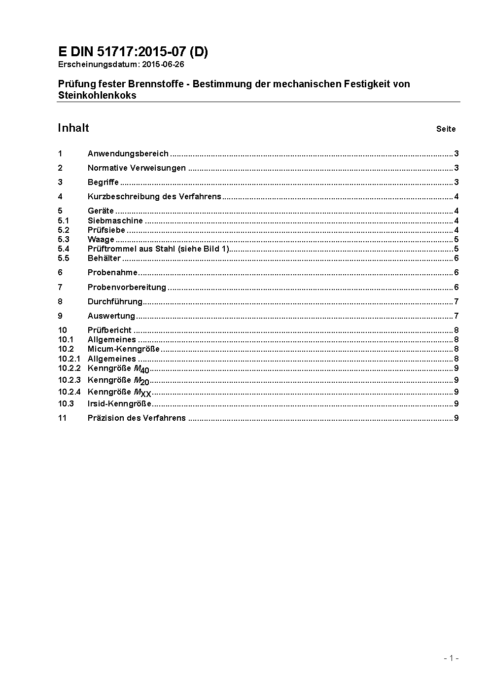 Prüfung fester Brennstoffe; Bestimmung der mechanischen Festigkeit von Steinkohlenkoks