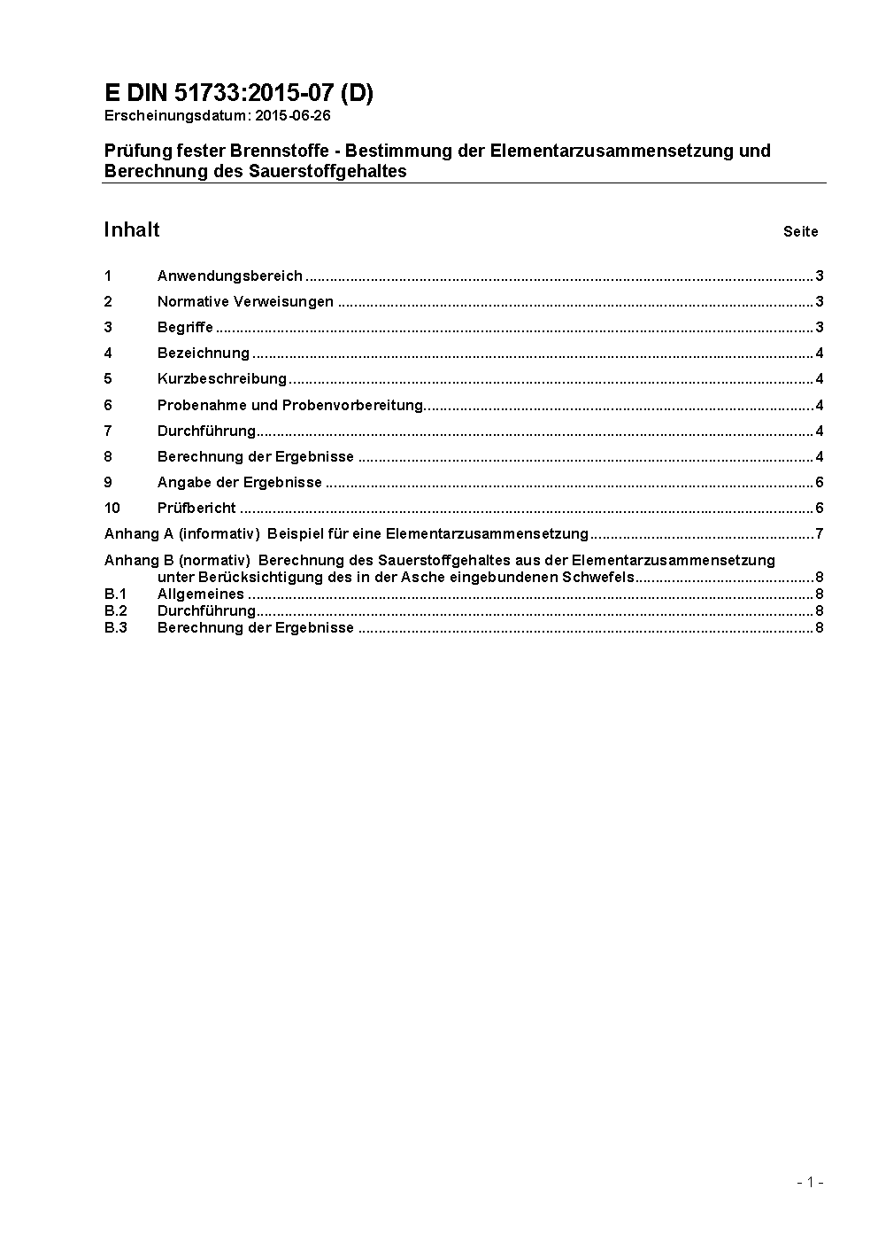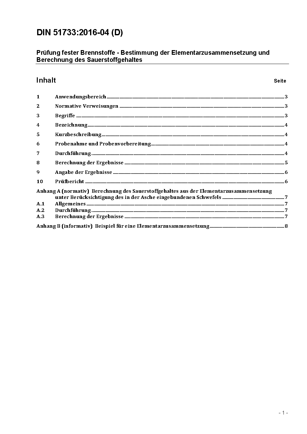 Prüfung fester Brennstoffe - Bestimmung der Elementarzusammensetzung und Berechnung des Sauerstoffgehaltes