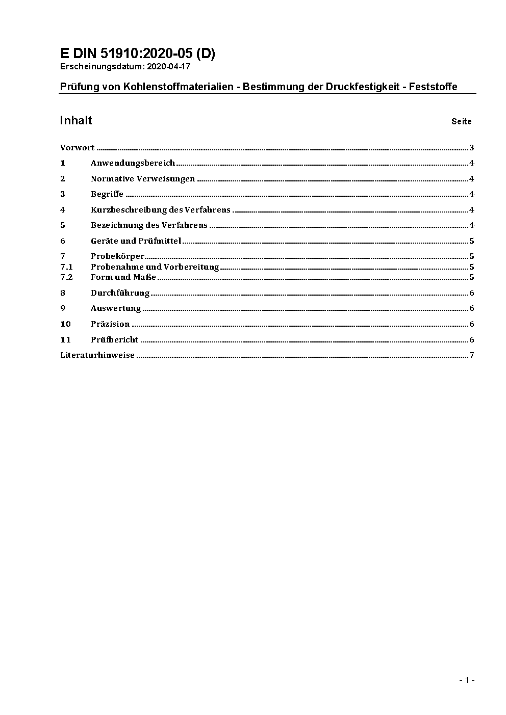 Prüfung von Kohlenstoffmaterialien; Bestimmung der Druckfestigkeit; Feststoffe