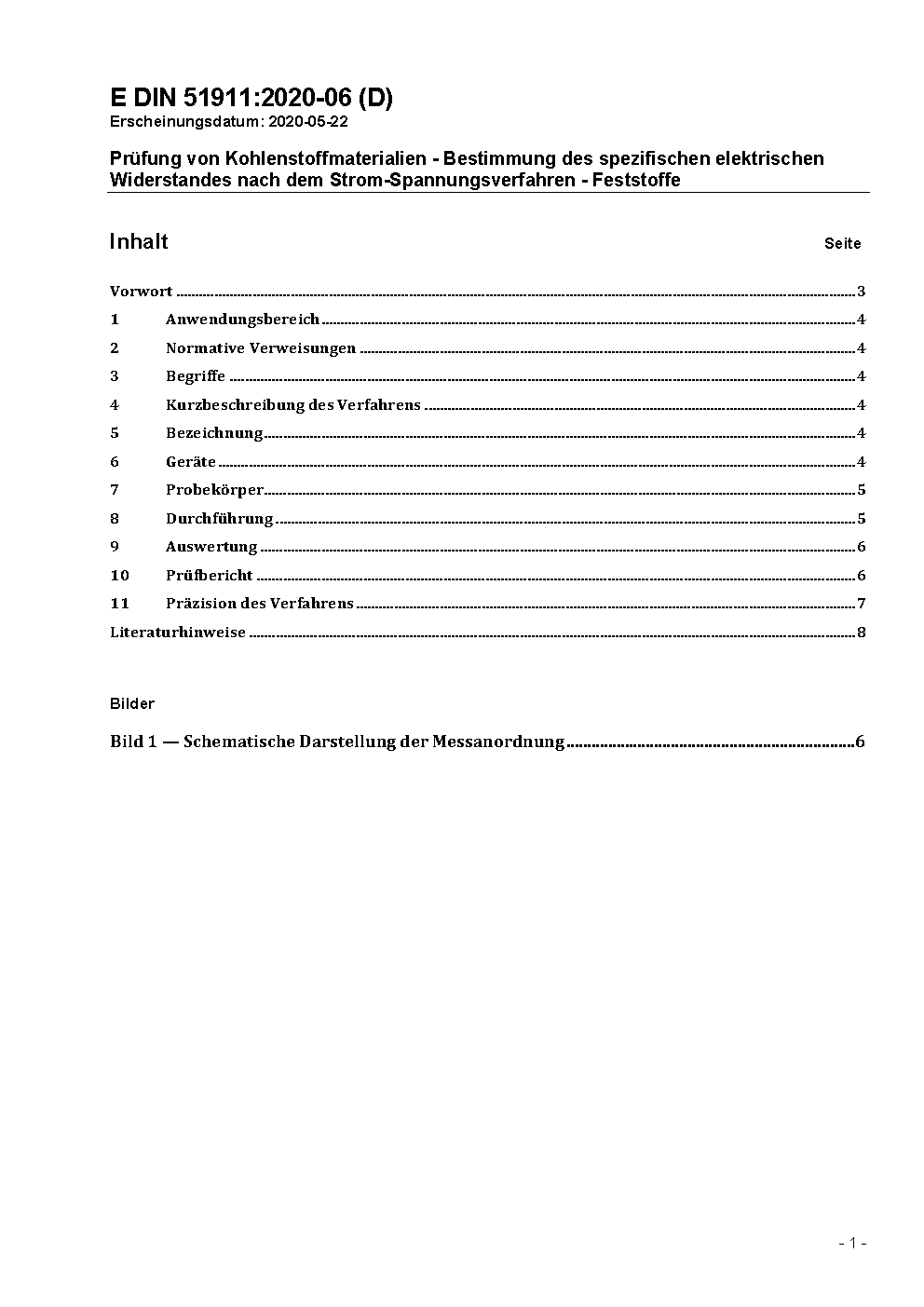 Prüfung von Kohlenstoffmaterialien - Bestimmung des spezifischen elektrischen Widerstandes nach dem Strom-Spannungsverfahren - Feststoffe