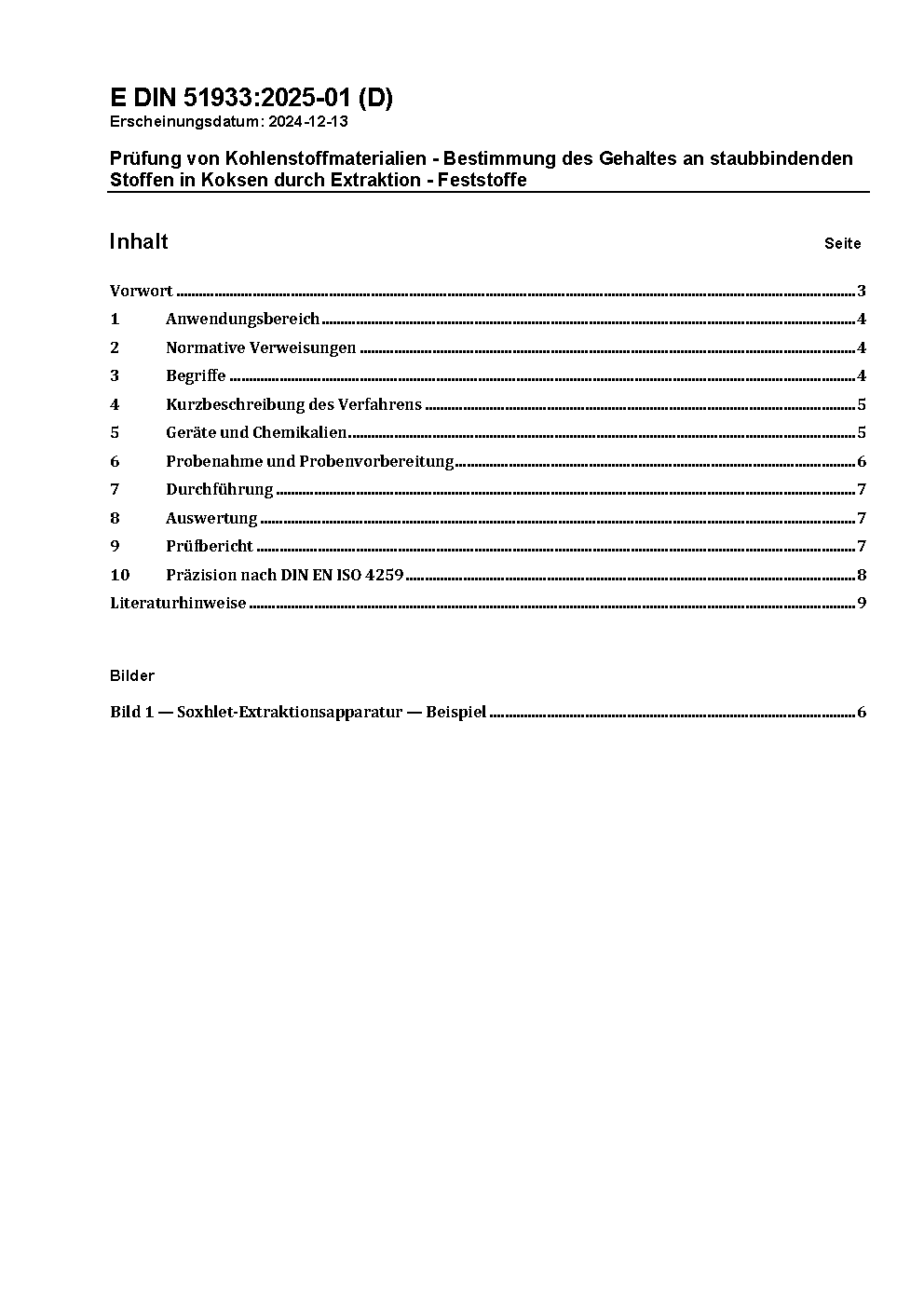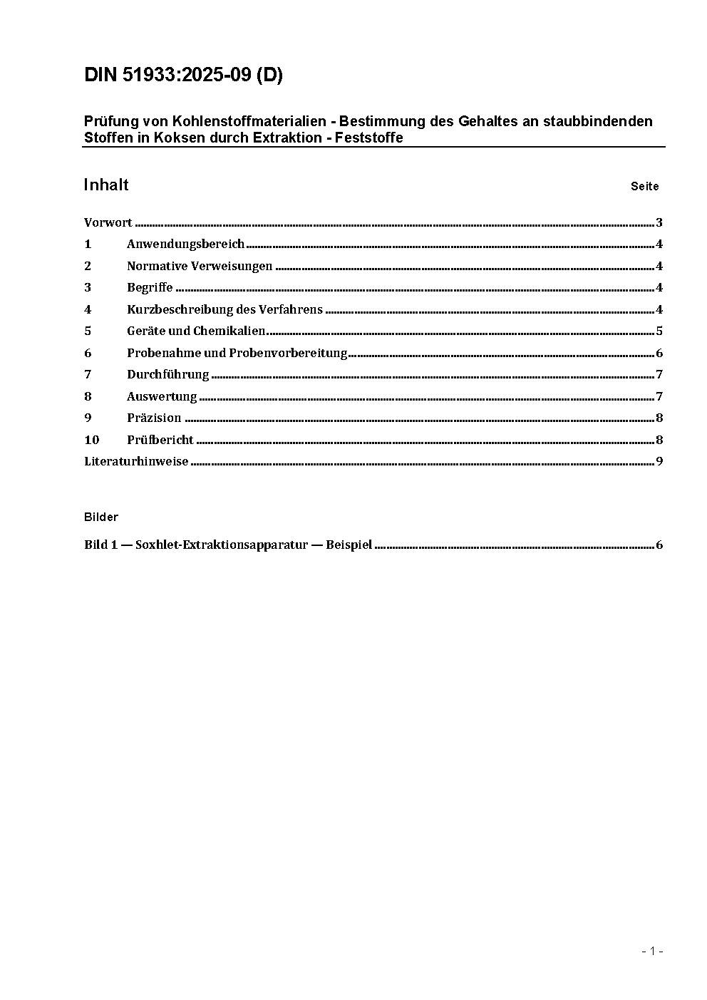 Prüfung von Kohlenstoffmaterialien; Bestimmung des Gehaltes an staubbindenden Stoffen in Koksen durch Extraktion; Feststoffe