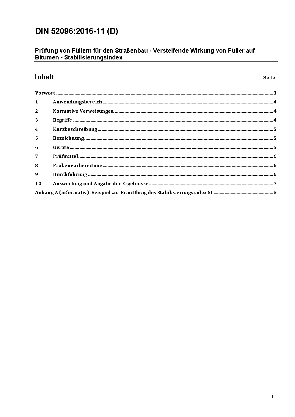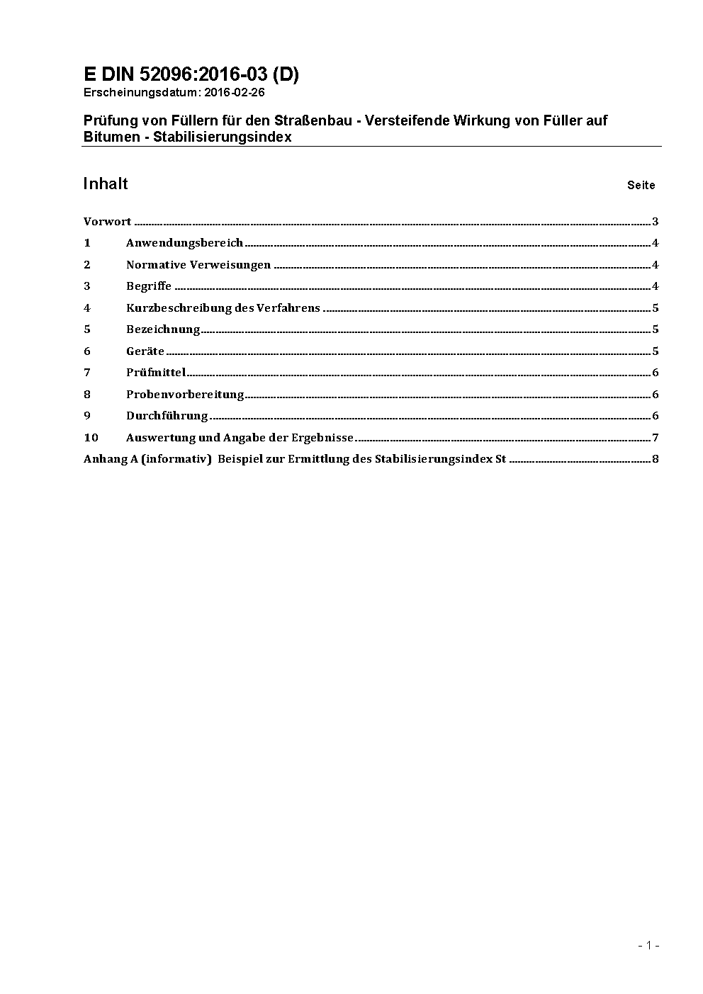 Prüfung von Füllern für den Straßenbau - Versteifende Wirkung von Füller auf Bitumen - Stabilisierungsindex