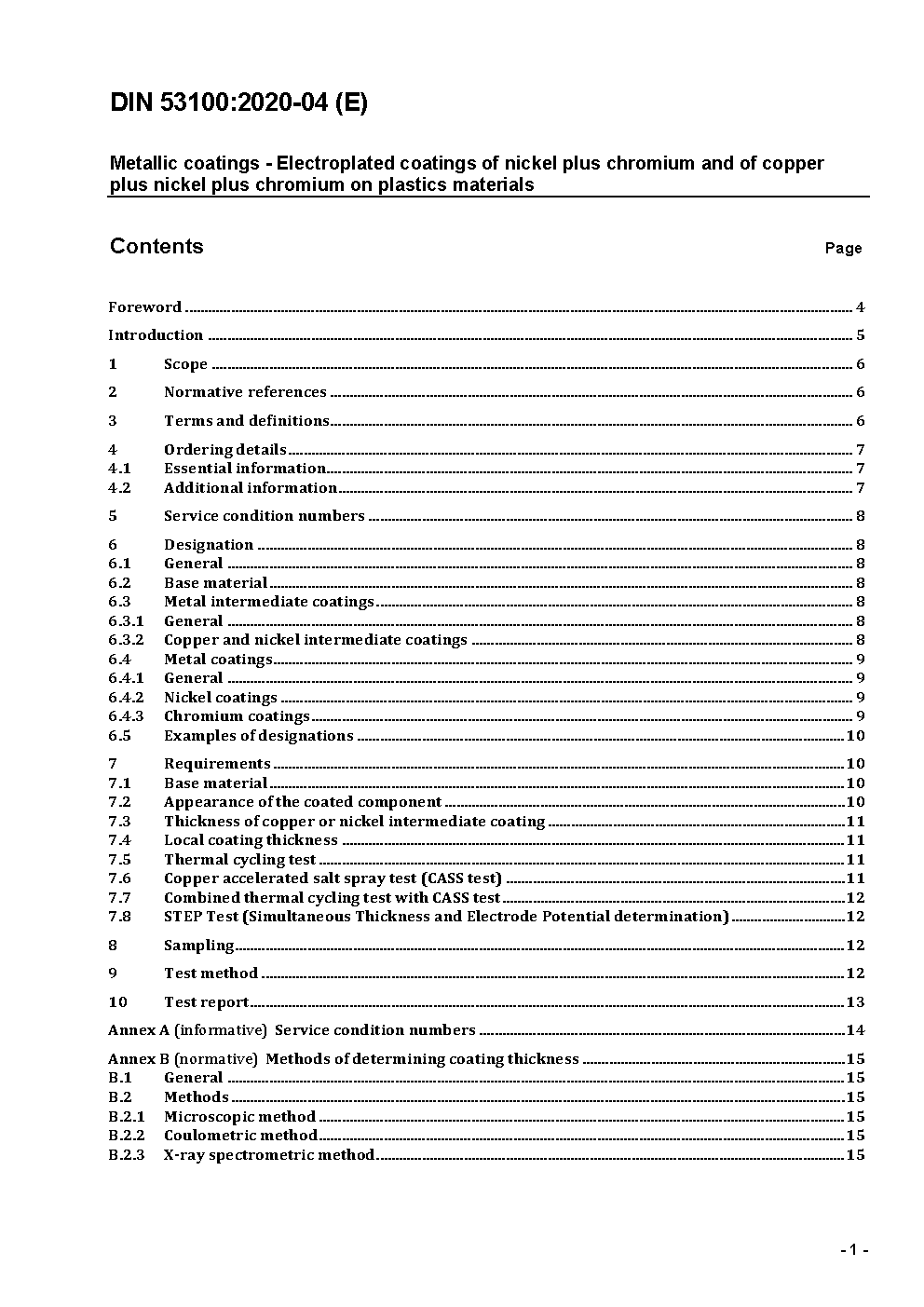 Metallische Überzüge - Galvanische Nickel-Chrom- und Kupfer-Nickel-Chrom-Überzüge auf Kunststoffen