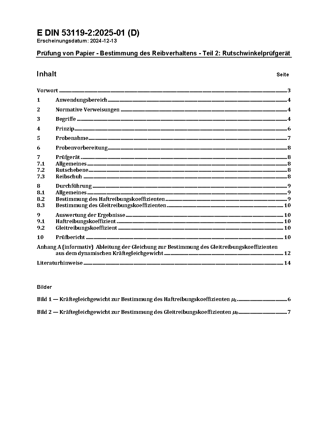 Prüfung von Papier - Bestimmung des Reibverhaltens - Teil 2: Rutschwinkelprüfgerät