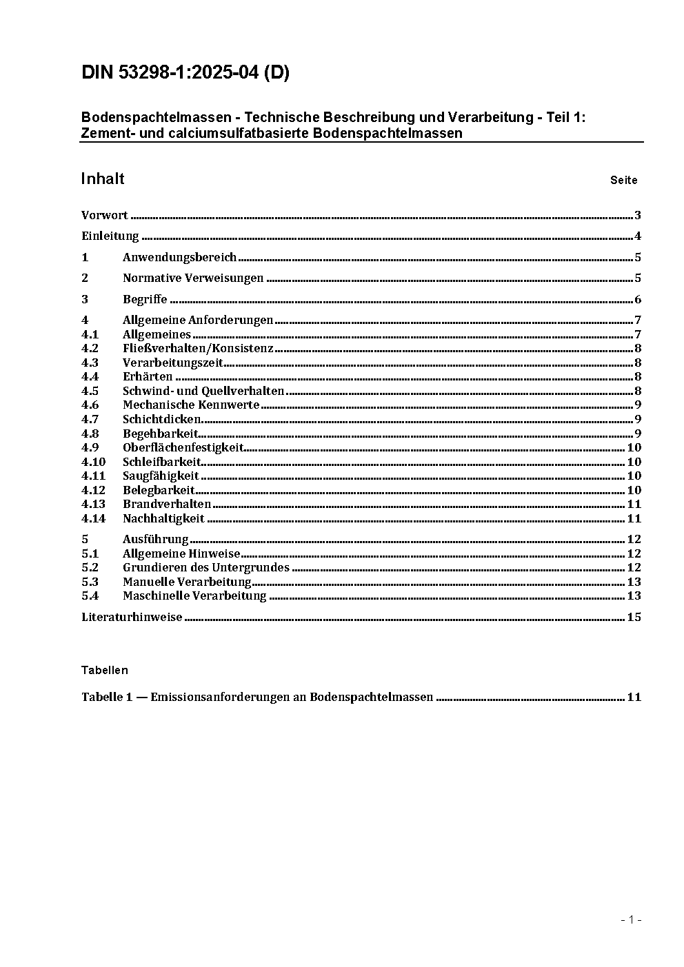 Bodenspachtelmassen - Technische Beschreibung und Verarbeitung - Teil 1: Zement- und calciumsulfatbasierte Bodenspachtelmassen