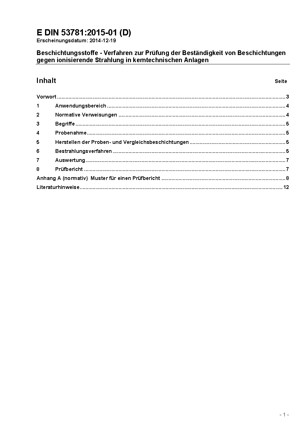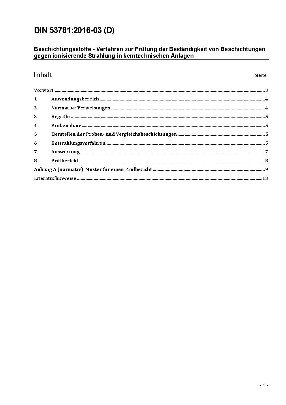 Beschichtungsstoffe - Verfahren zur Prüfung der Beständigkeit von Beschichtungen gegen ionisierende Strahlung in kerntechnischen Anlagen