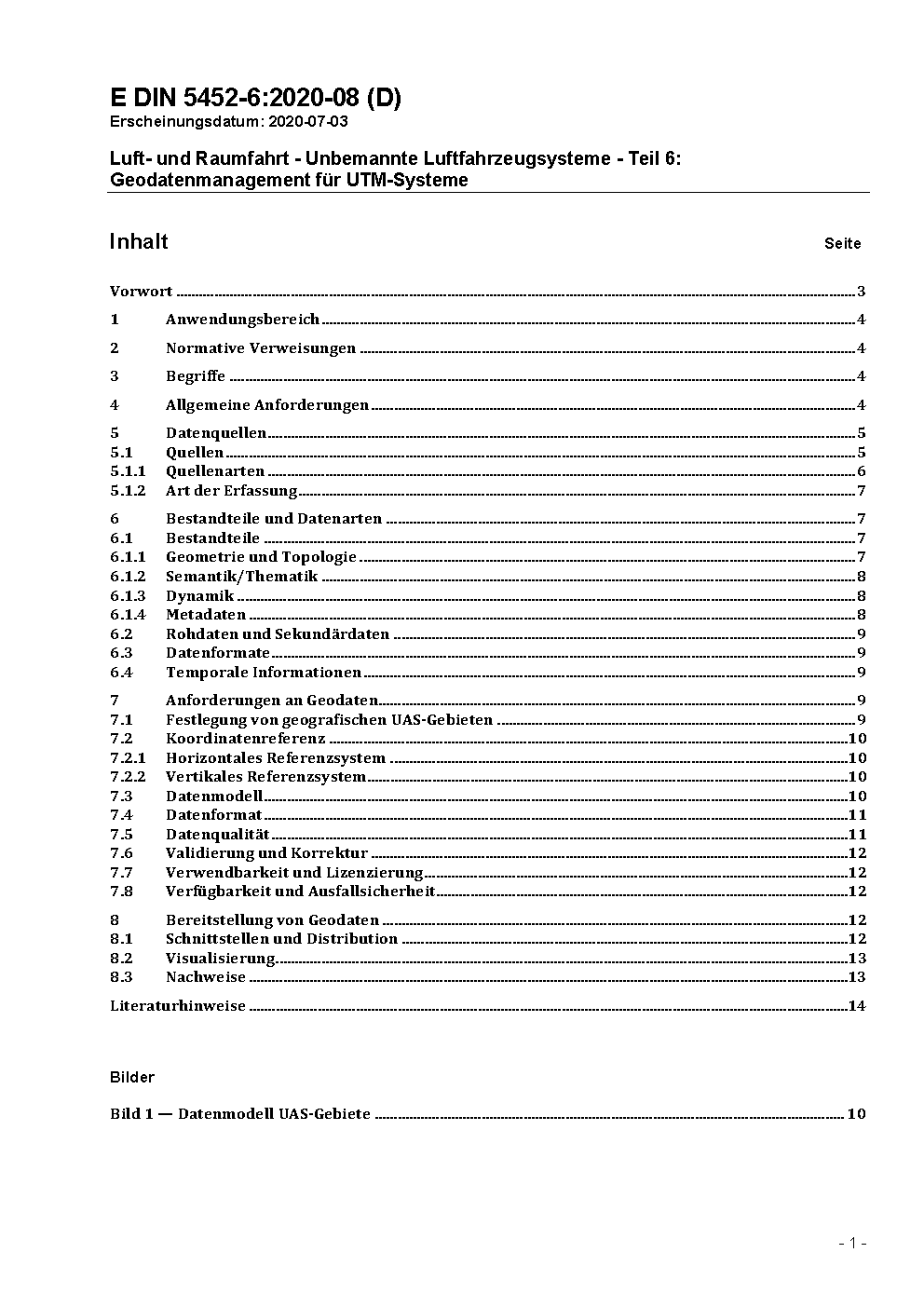 Luft- und Raumfahrt - Unbemannte Luftfahrzeugsysteme - Teil 6: Geodatenmanagement für UTM-Systeme