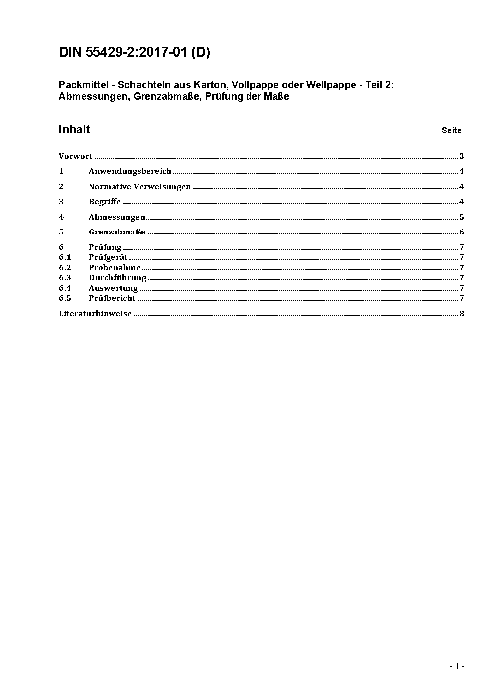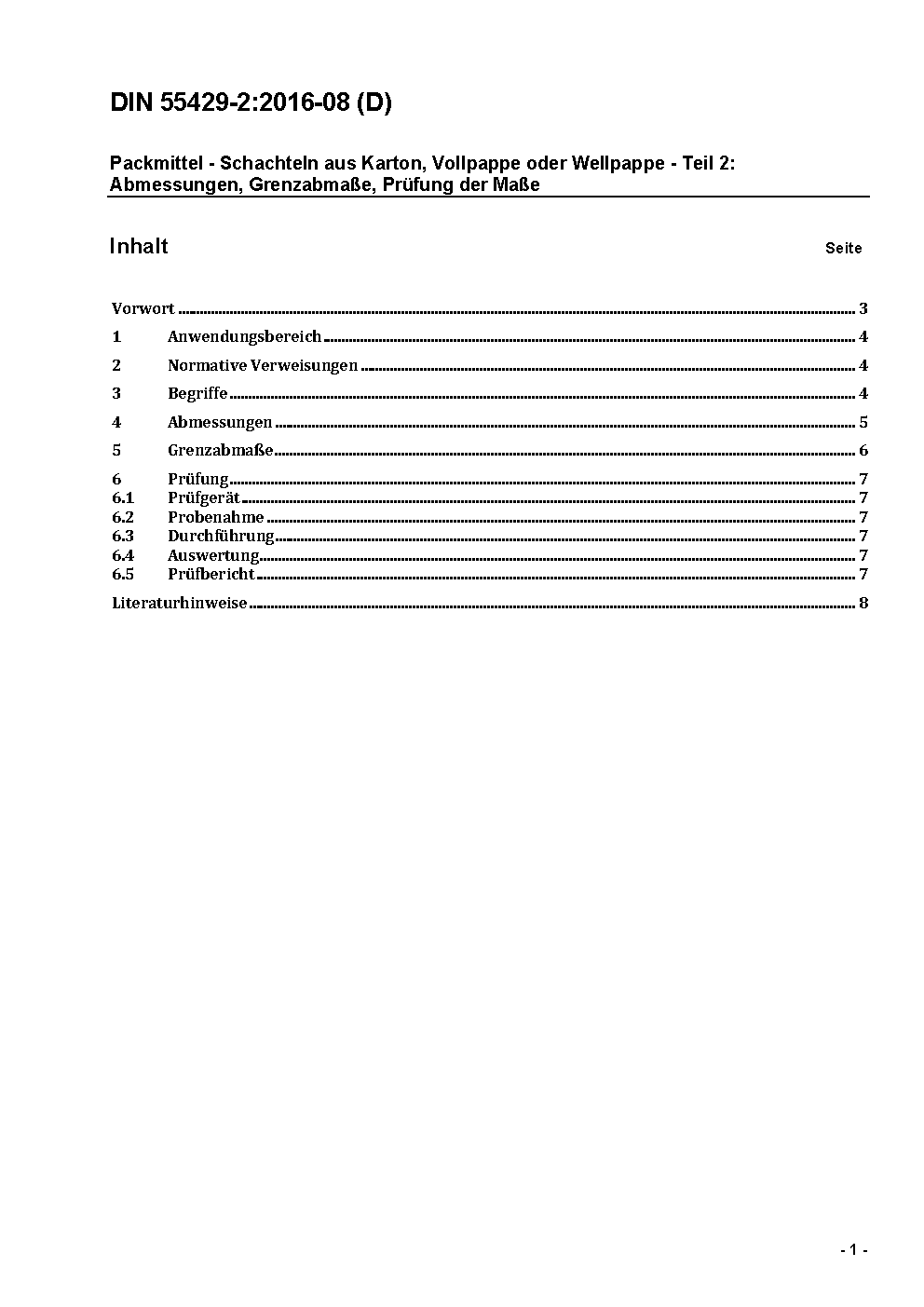 Packmittel - Schachteln aus Karton, Vollpappe oder Wellpappe - Teil 2: Abmessungen, Grenzabmaße, Prüfung der Maße