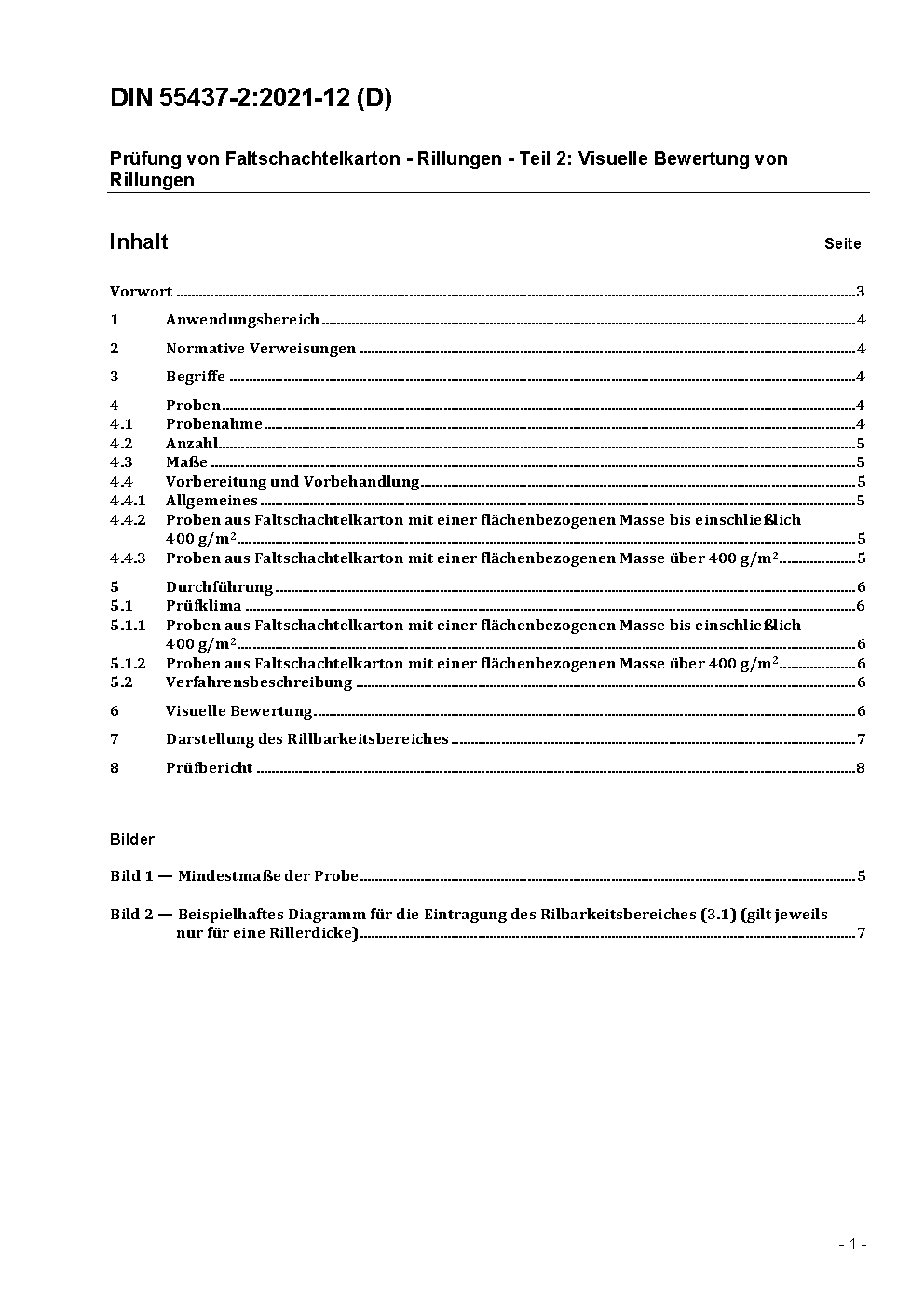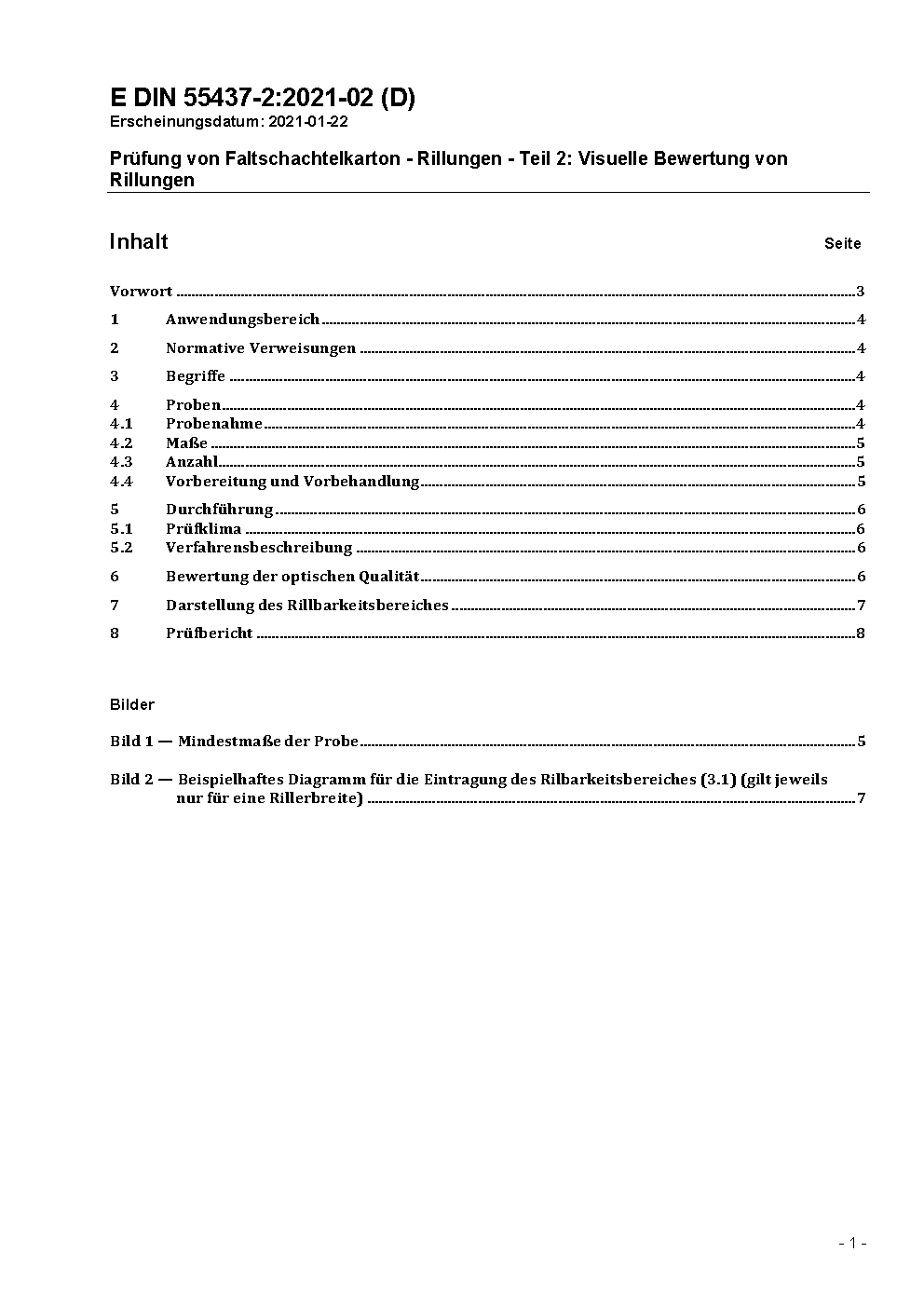 Prüfung von Faltschachtelkarton - Rillungen - Teil 2: Visuelle Bewertung von Rillungen