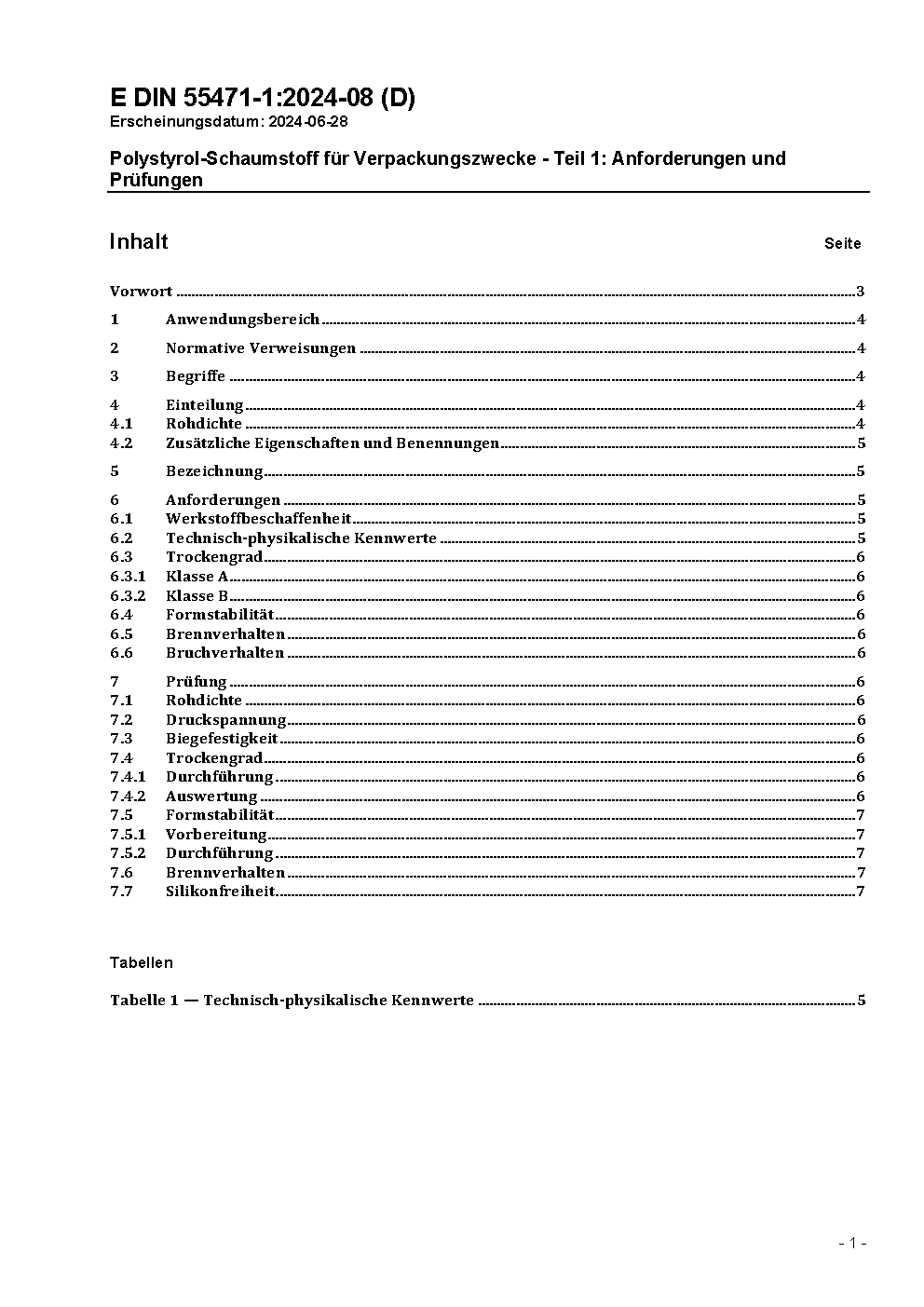 Polystyrol-Schaumstoff für Verpackungszwecke; Anforderungen, Prüfung