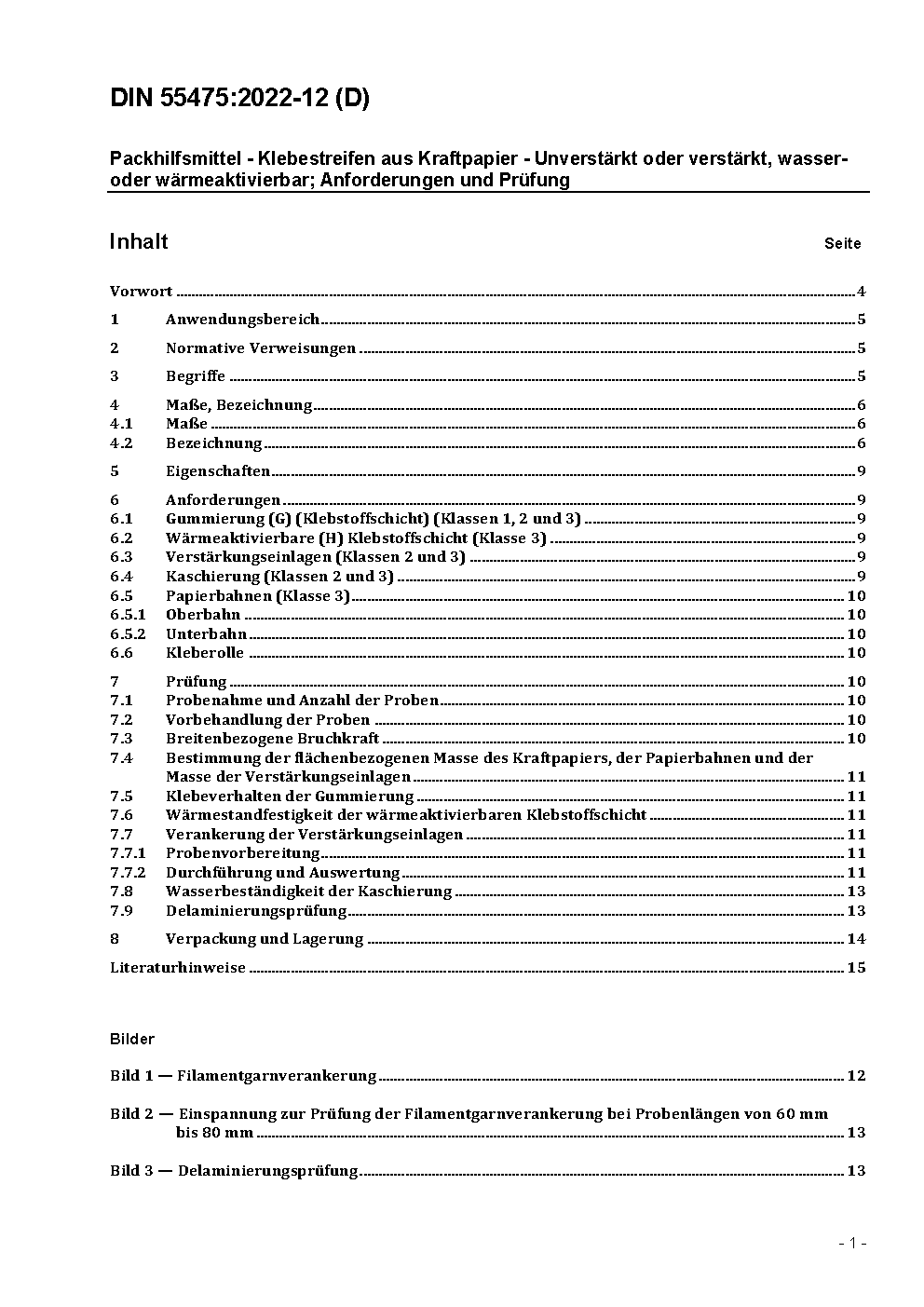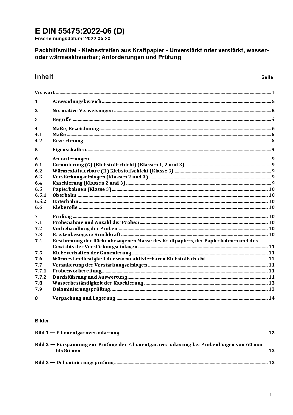 Packhilfsmittel; Unverstärkte Klebestreifen aus Kraftpapier; Anforderungen und Prüfung