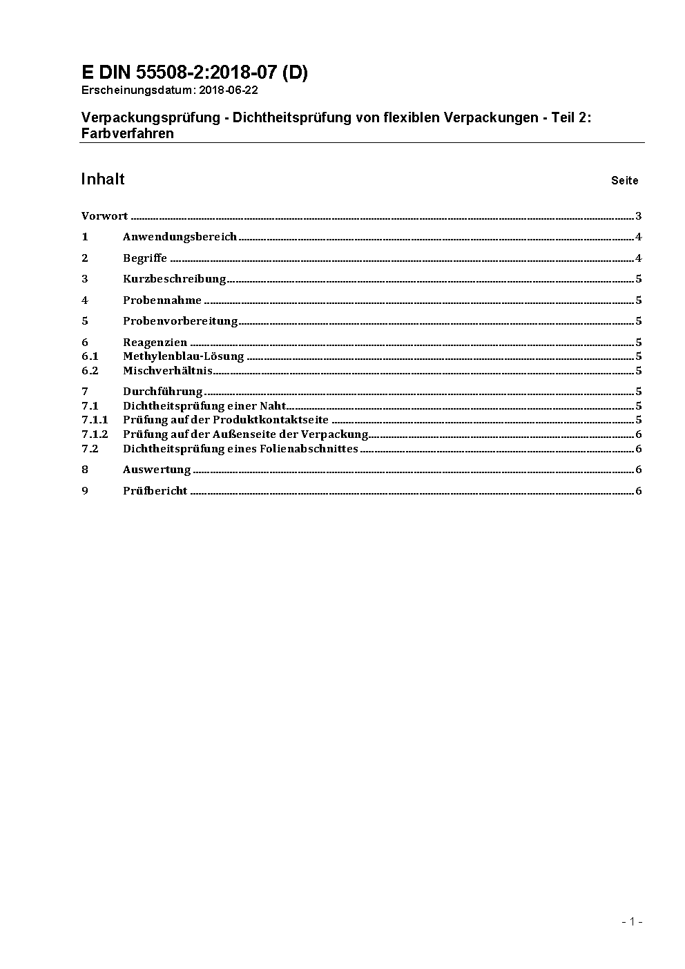 Verpackungsprüfung - Dichtheitsprüfung von flexiblen Verpackungen - Teil 2: Farbverfahren