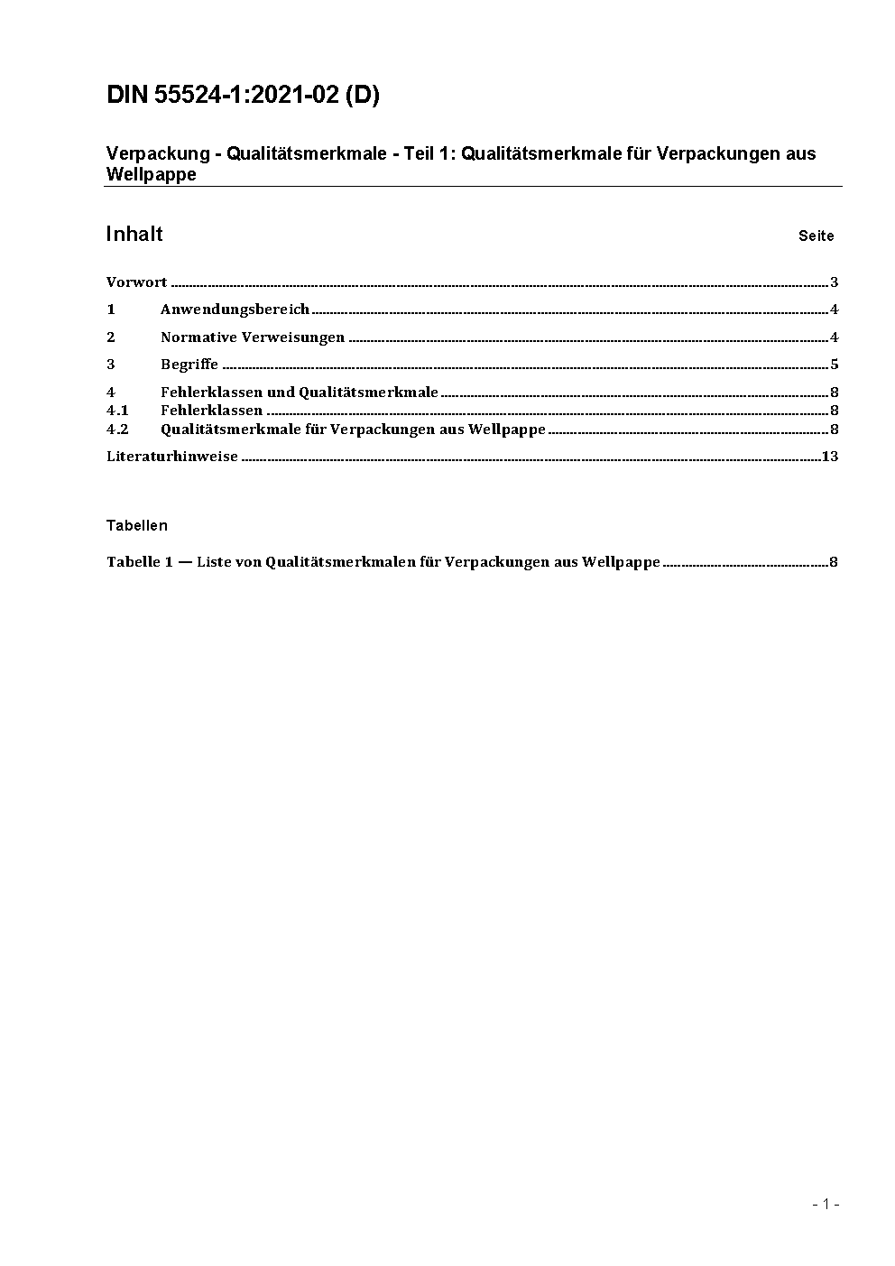 Verpackung - Qualitätsmerkmale - Teil 1: Qualitätsmerkmale für Verpackungen aus Wellpappe