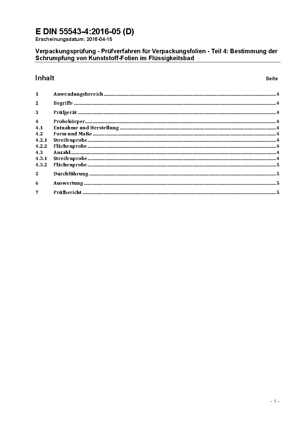 Verpackungsprüfung - Prüfverfahren für Verpackungsfolien - Teil 4: Bestimmung der Schrumpfung von Folien aus Polyethylen