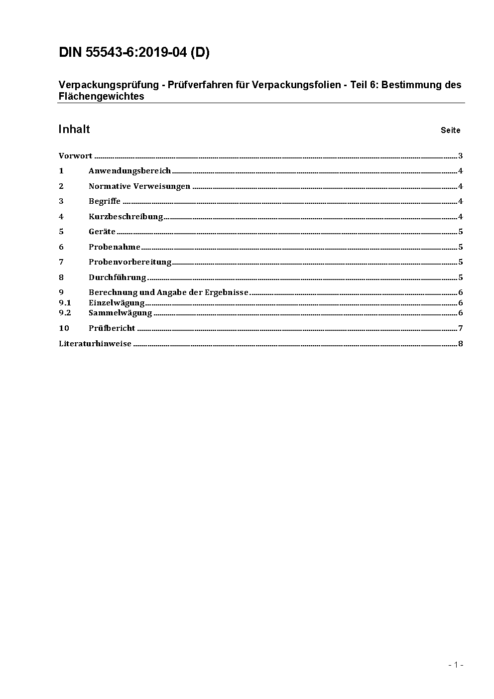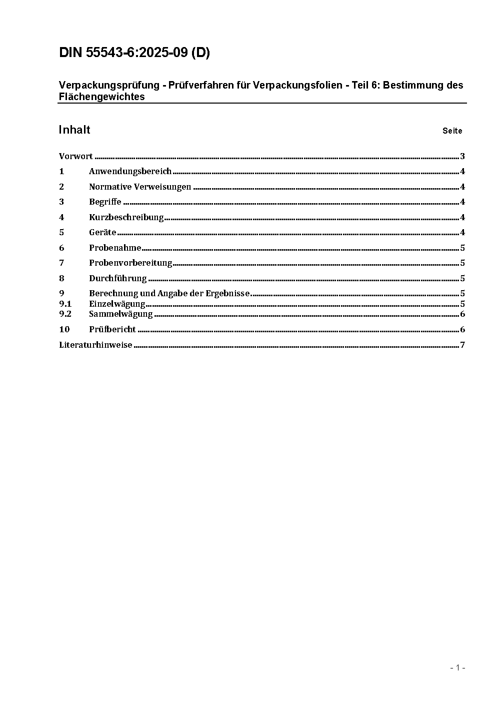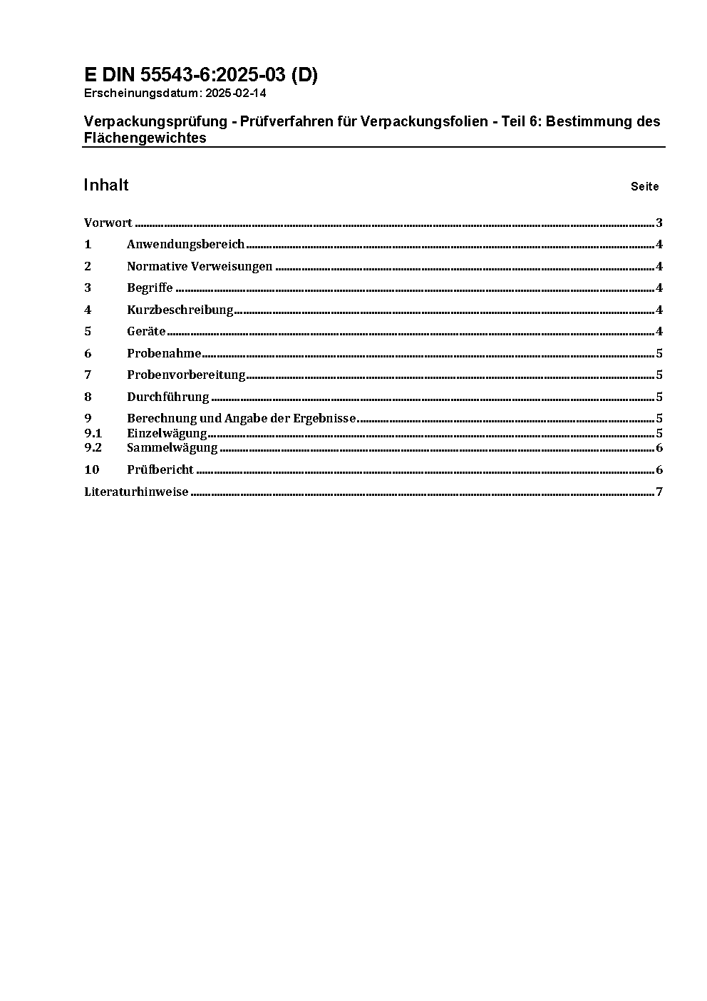 Verpackungsprüfung - Prüfverfahren für Verpackungsfolien - Teil 6: Bestimmung des Flächengewichtes