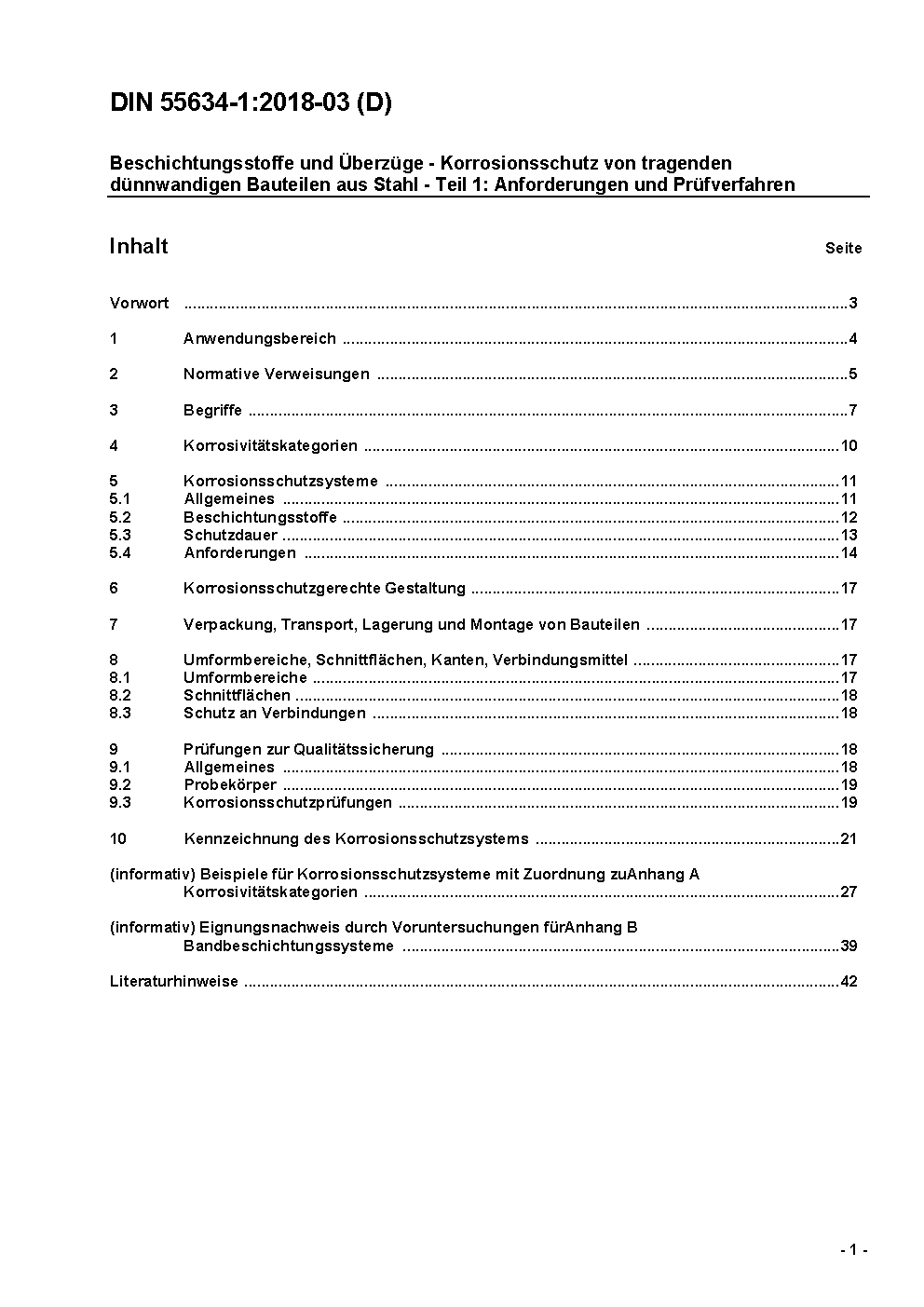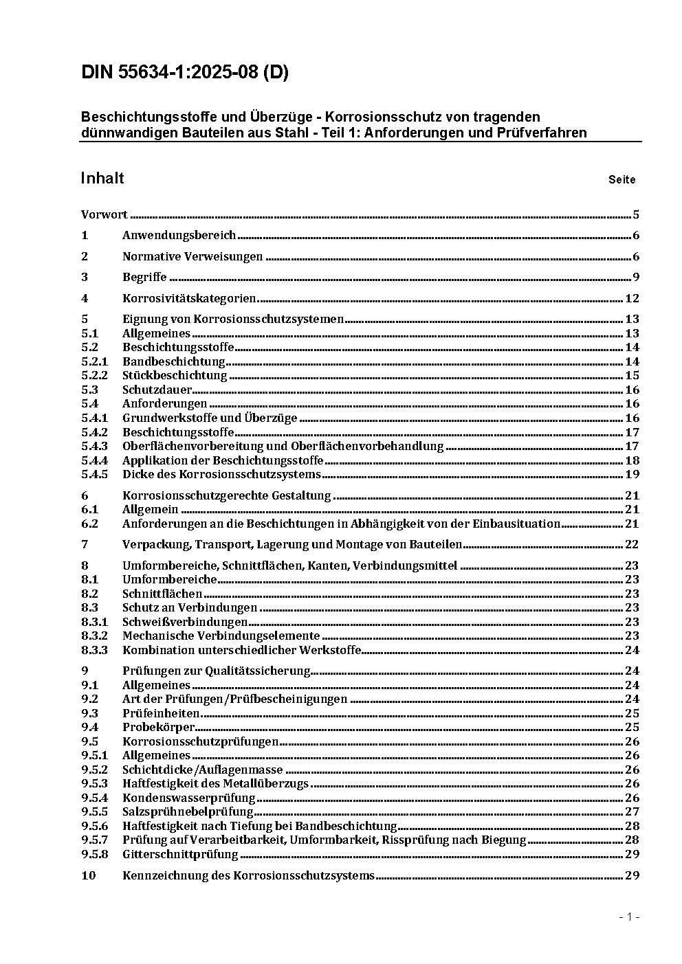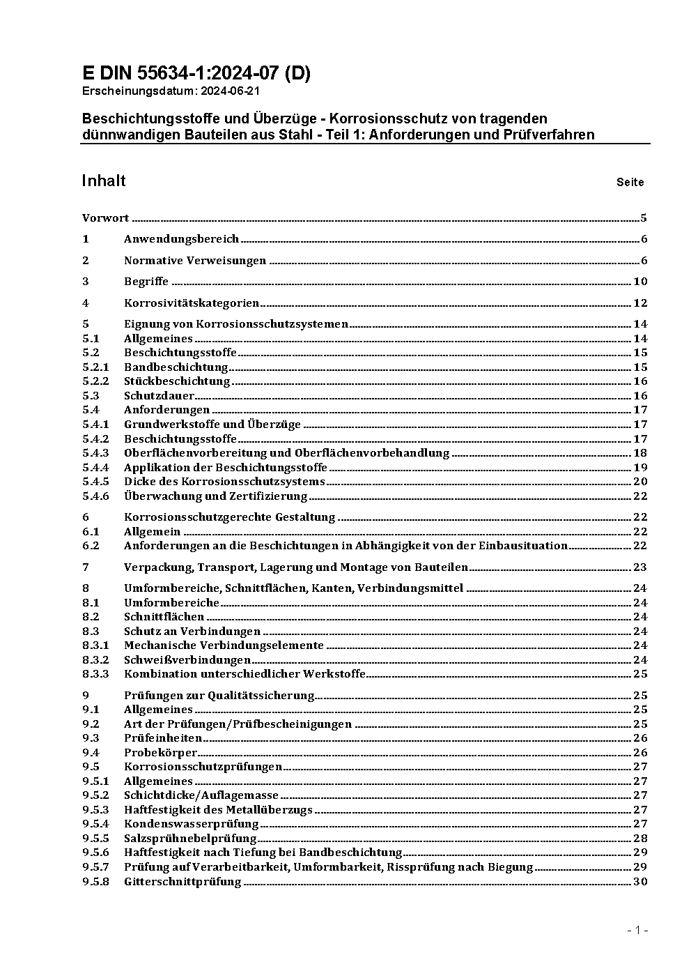 Beschichtungsstoffe und Überzüge - Korrosionsschutz von tragenden dünnwandigen Bauteilen aus Stahl - Teil 1: Anforderungen und Prüfverfahren