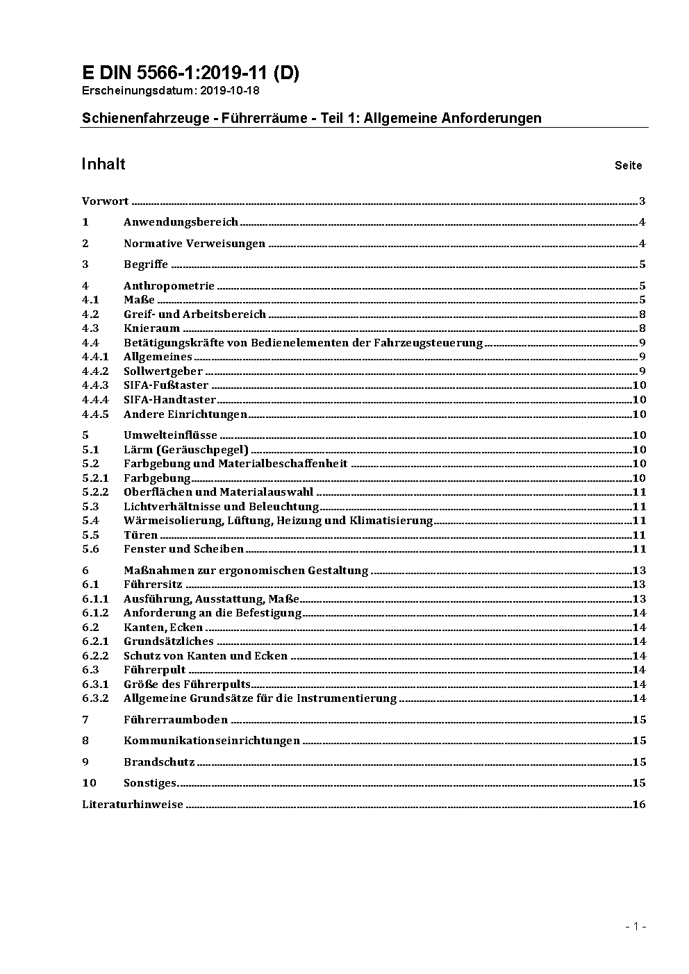 Schienenfahrzeuge - Führerräume - Teil 1: Allgemeine Anforderungen