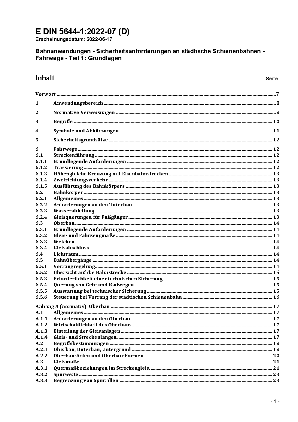 Städtische Schienenbahnen (Urban Rail) - Anforderungen an Fahrwege - Teil 1: Grundlagen