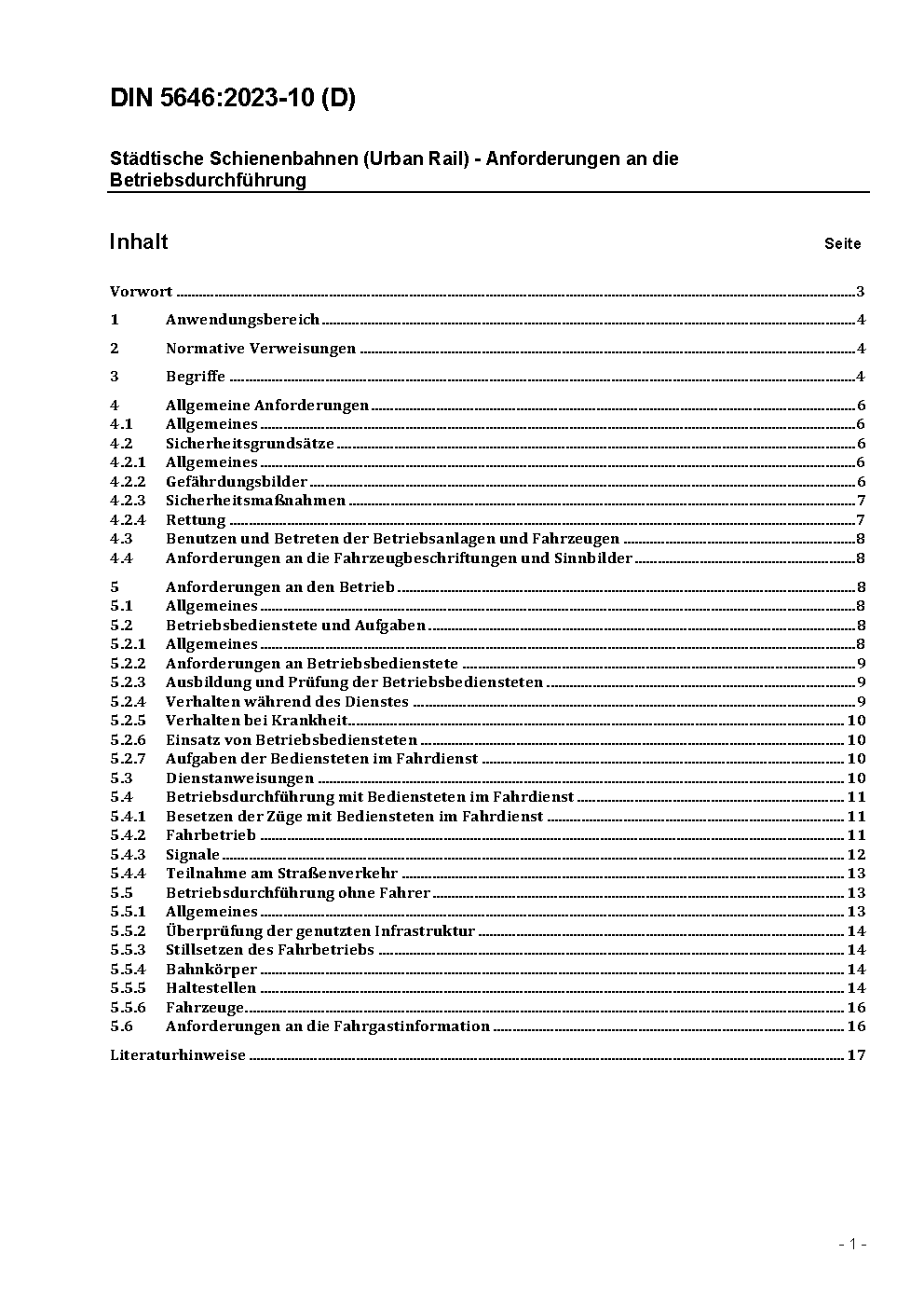 Städtische Schienenbahnen (Urban Rail) - Anforderungen an die Betriebsdurchführung