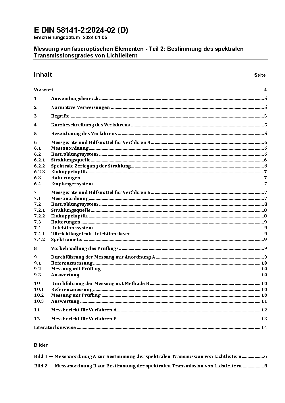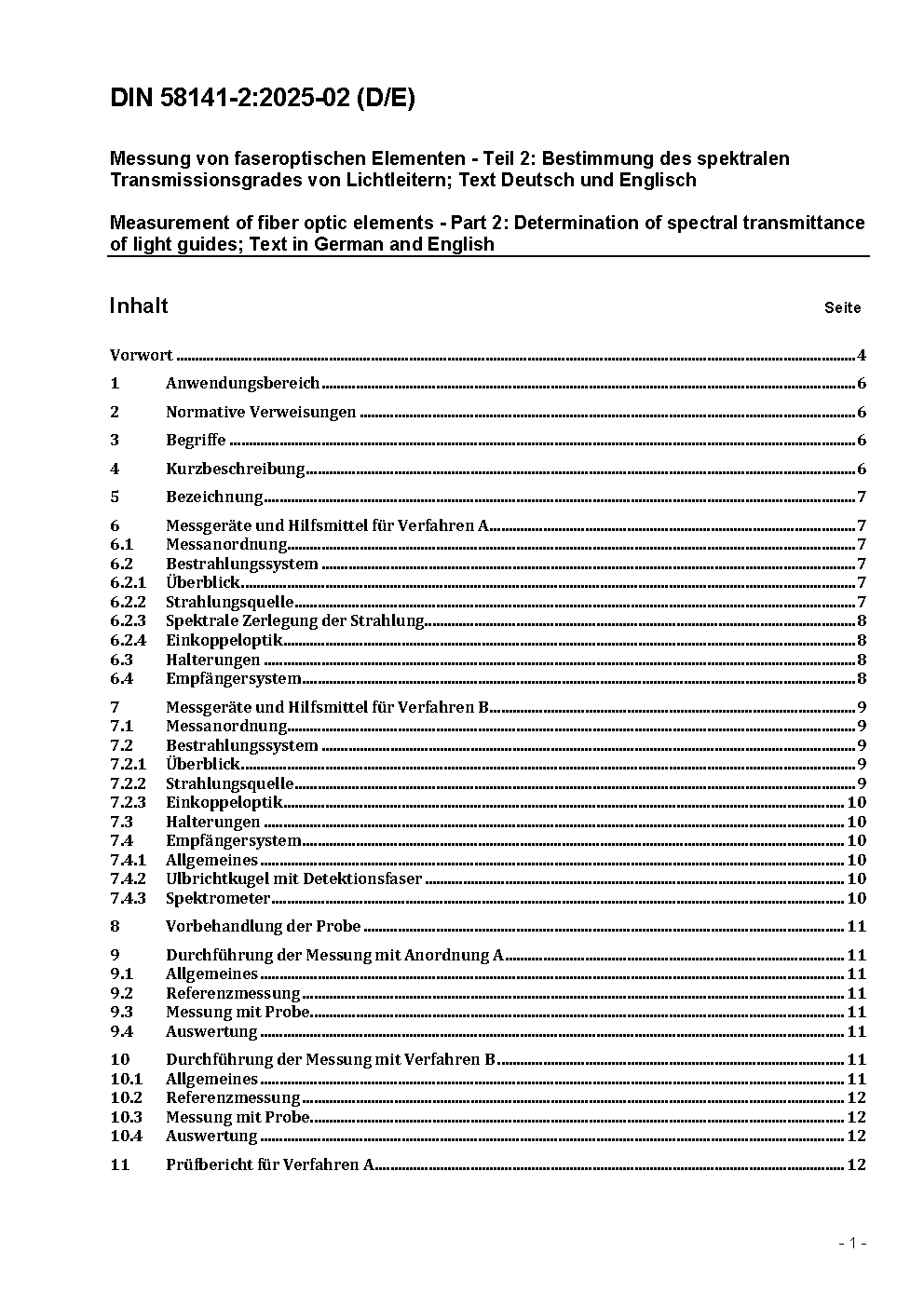 Messung von faseroptischen Elementen - Teil 2: Bestimmung des spektralen Transmissionsgrades von Lichtleitern; Text Deutsch und Englisch