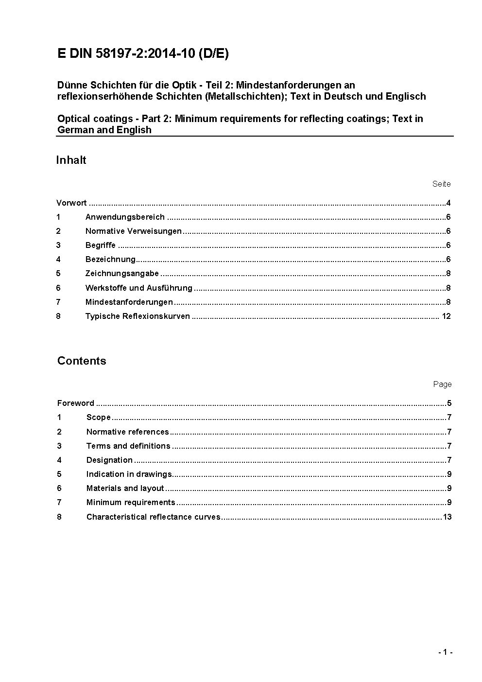 Optical coatings - Part 2: Minimum requirements for reflecting coatings; Text in German and English