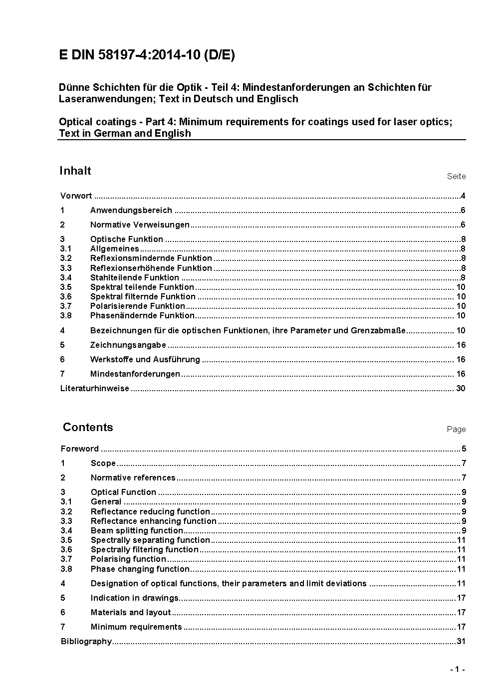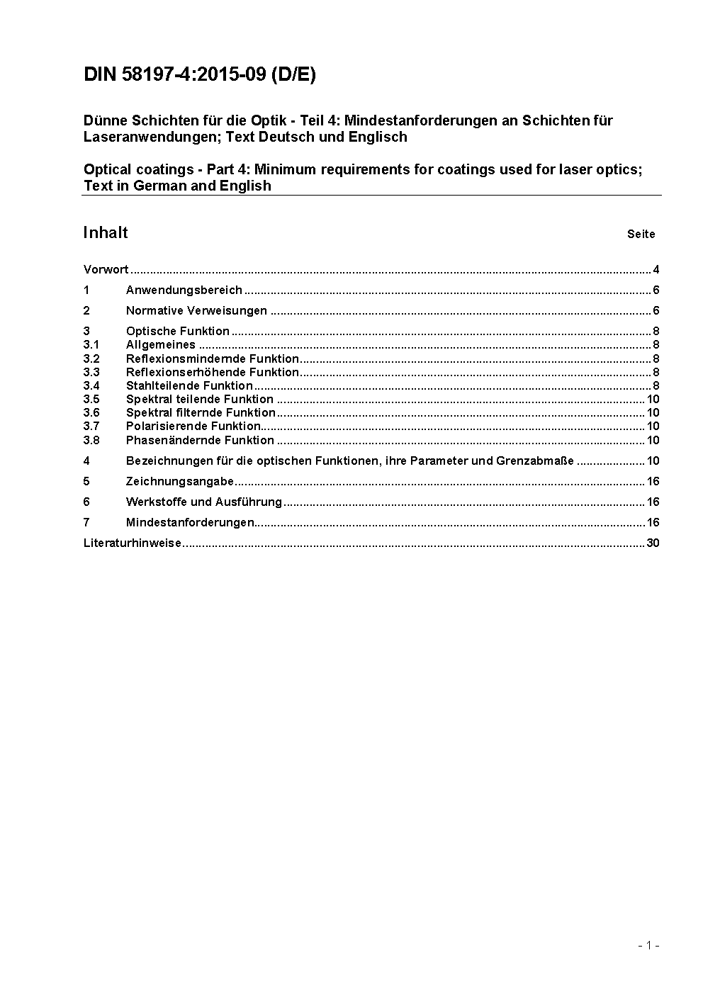 Dünne Schichten für die Optik - Teil 4: Mindestanforderungen an Schichten für Laseranwendungen