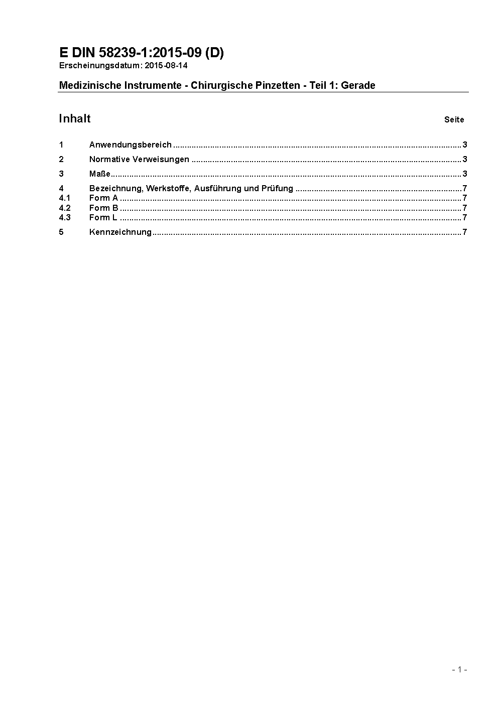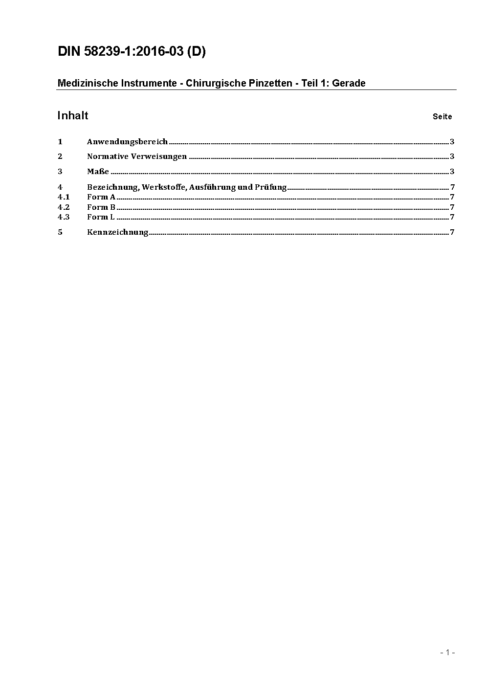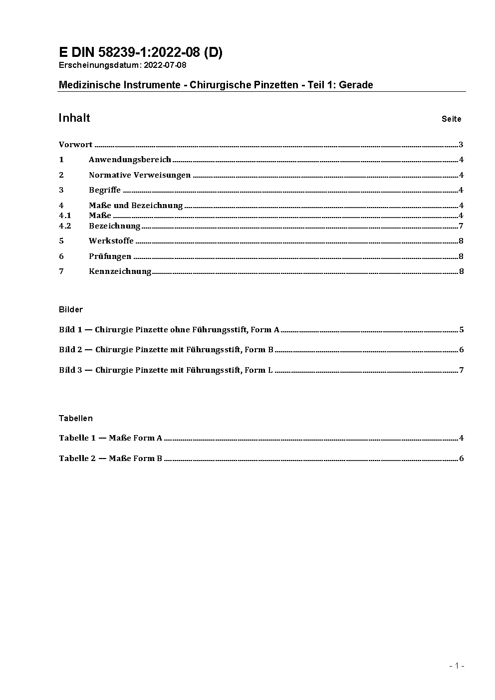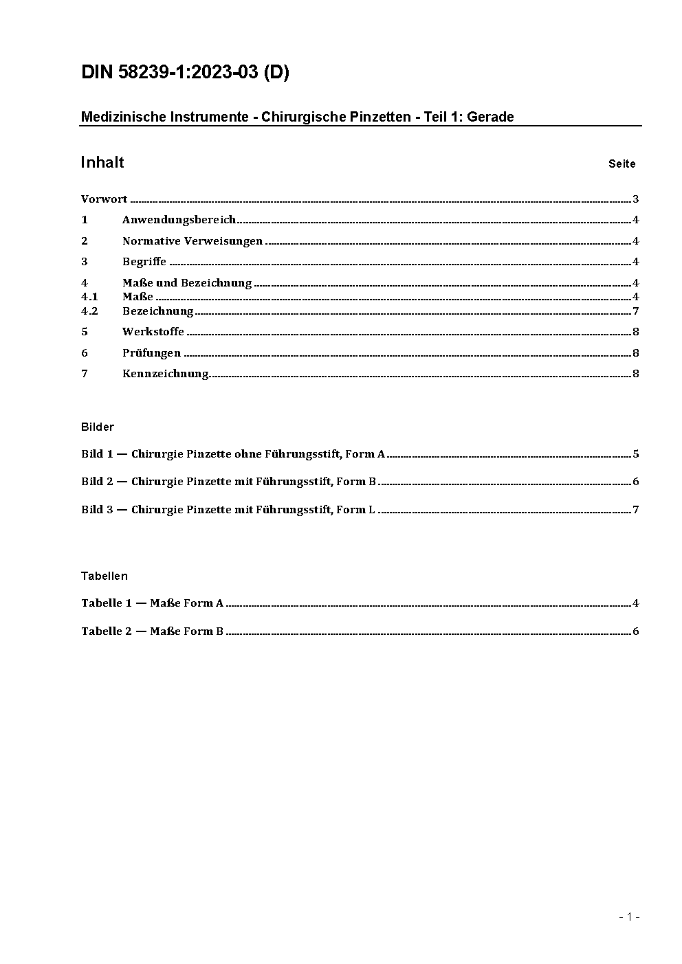 Medizinische Instrumente - Chirurgische Pinzetten - Teil 1: Gerade