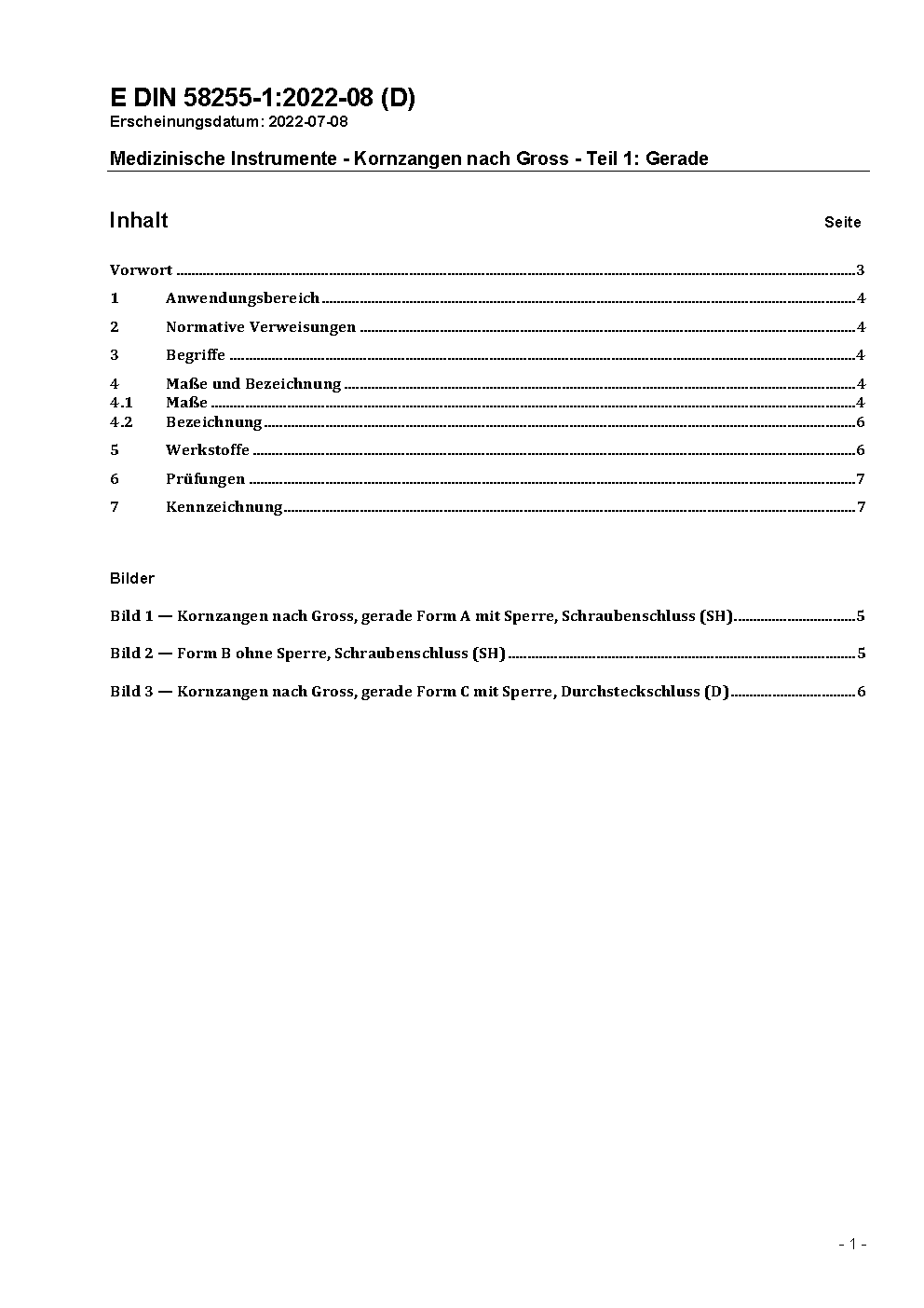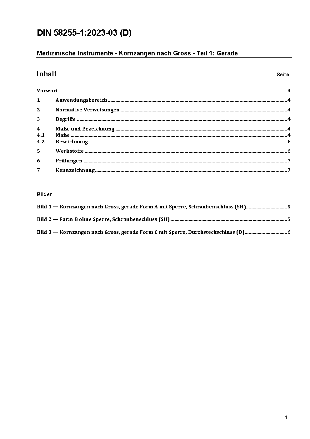 Medizinische Instrumente - Kornzangen nach Gross - Teil 1: Gerade