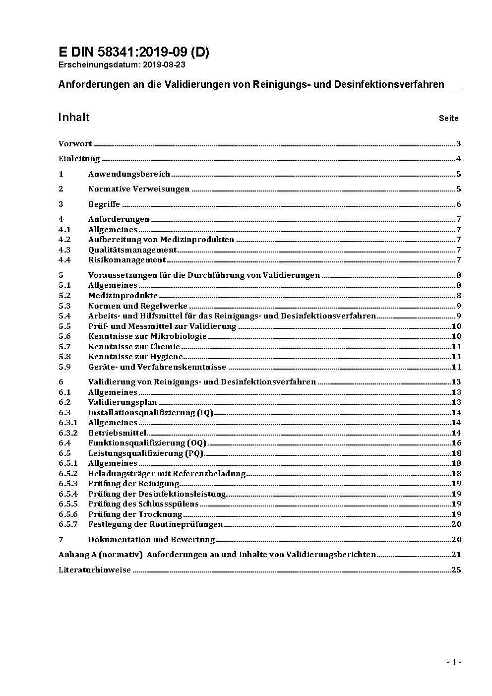 Anforderungen an die Validierungen von Reinigungs- und Desinfektionsverfahren / Achtung: Gilt in Verbindung mit DIN EN ISO 15883-1 (2014-10), DIN EN ISO 15883-5 (2020-06)