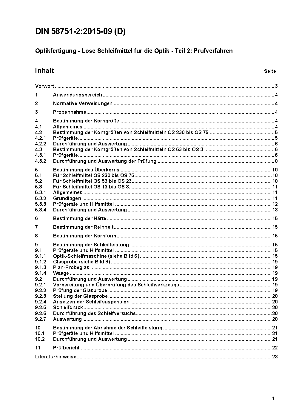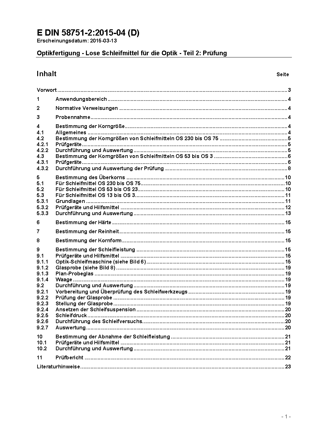 Optikfertigung - Lose Schleifmittel für die Optik - Teil 2: Prüfverfahren