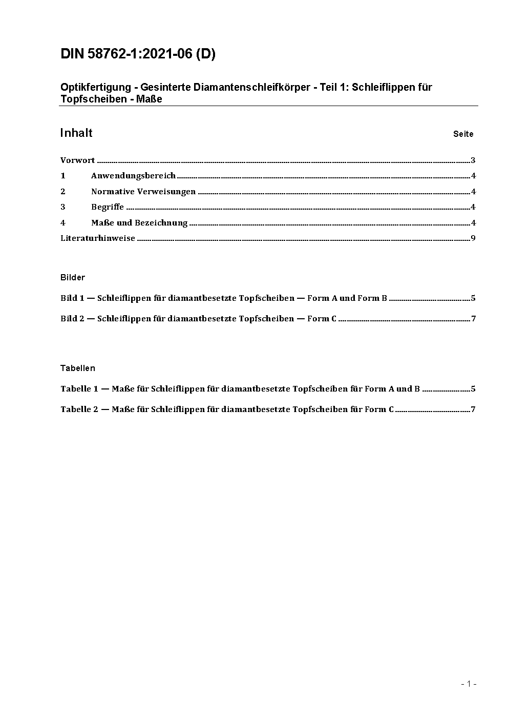 Optikfertigung - Gesinterte Diamantenschleifkörper - Teil 1: Schleiflippen für Topfscheiben - Maße