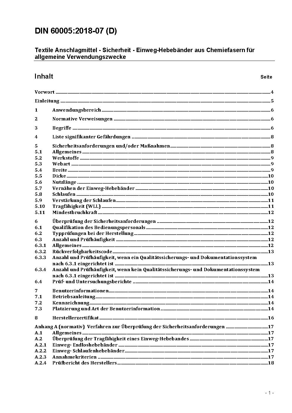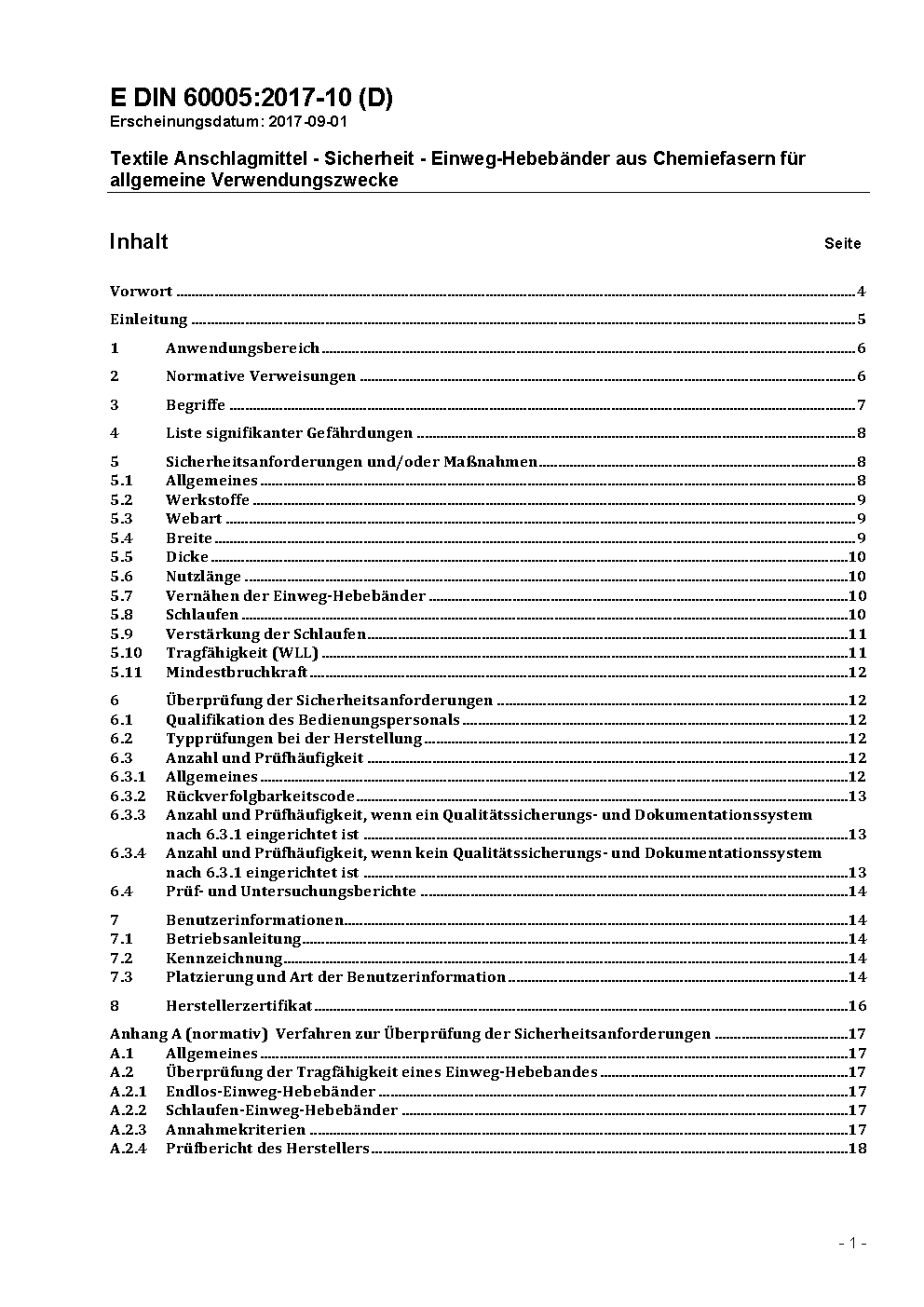 Textile Anschlagmittel - Sicherheit - Einweg-Hebebänder aus Chemiefasern für allgemeine Verwendungszwecke (Vorschlag für eine Europäische Norm)