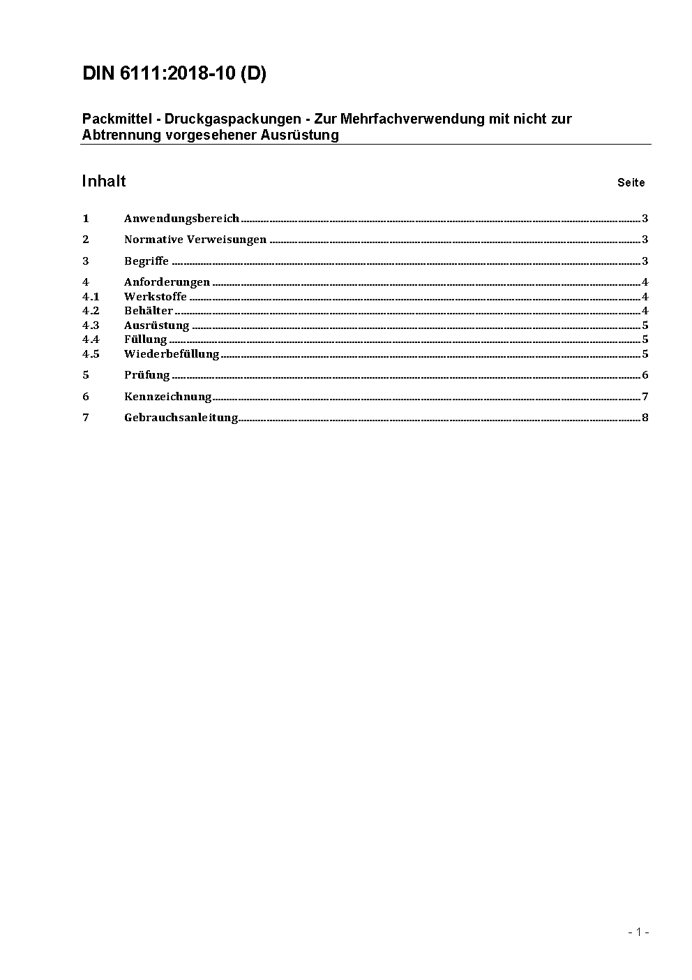 Packmittel - Druckgaspackungen - Zur Mehrfachverwendung mit nicht zur Abtrennung vorgesehener Ausrüstung