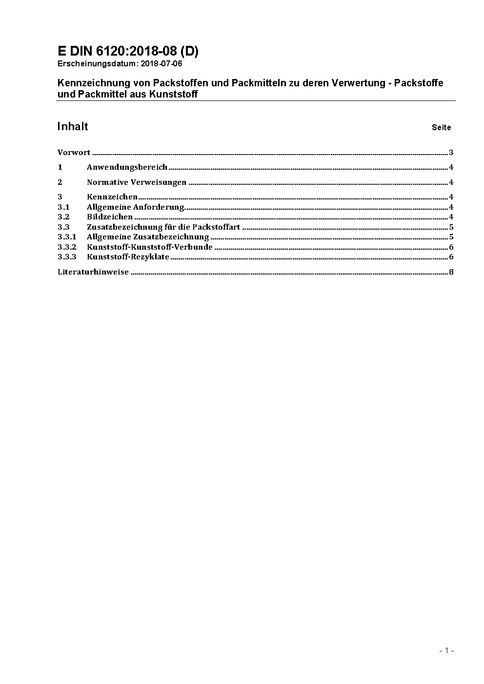 Kennzeichnung von Packstoffen und Packmitteln zu deren Verwertung - Packstoffe und Packmittel aus Kunststoff