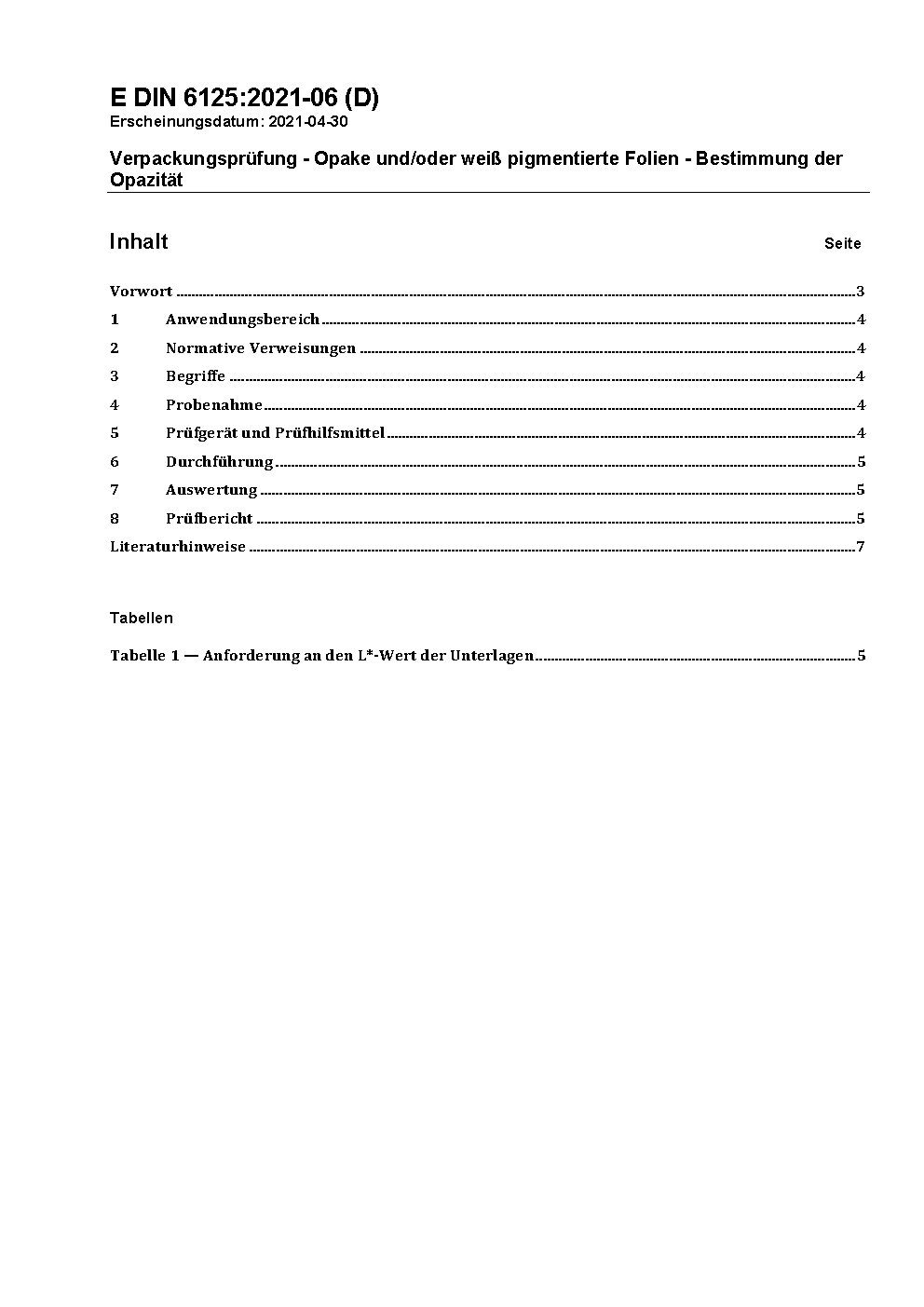 Verpackungsprüfung - Opake und/oder weiß pigmentierte Folien - Bestimmung der Opazität