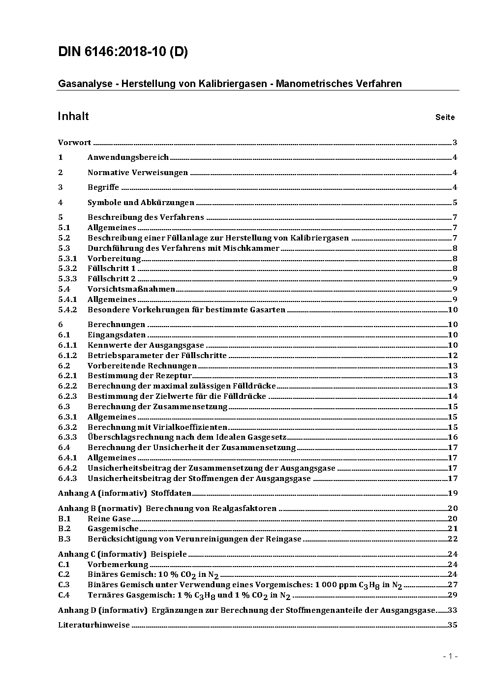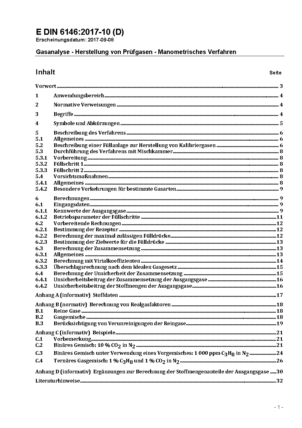 Gasanalyse - Herstellung von Kalibriergasen - Manometrisches Verfahren