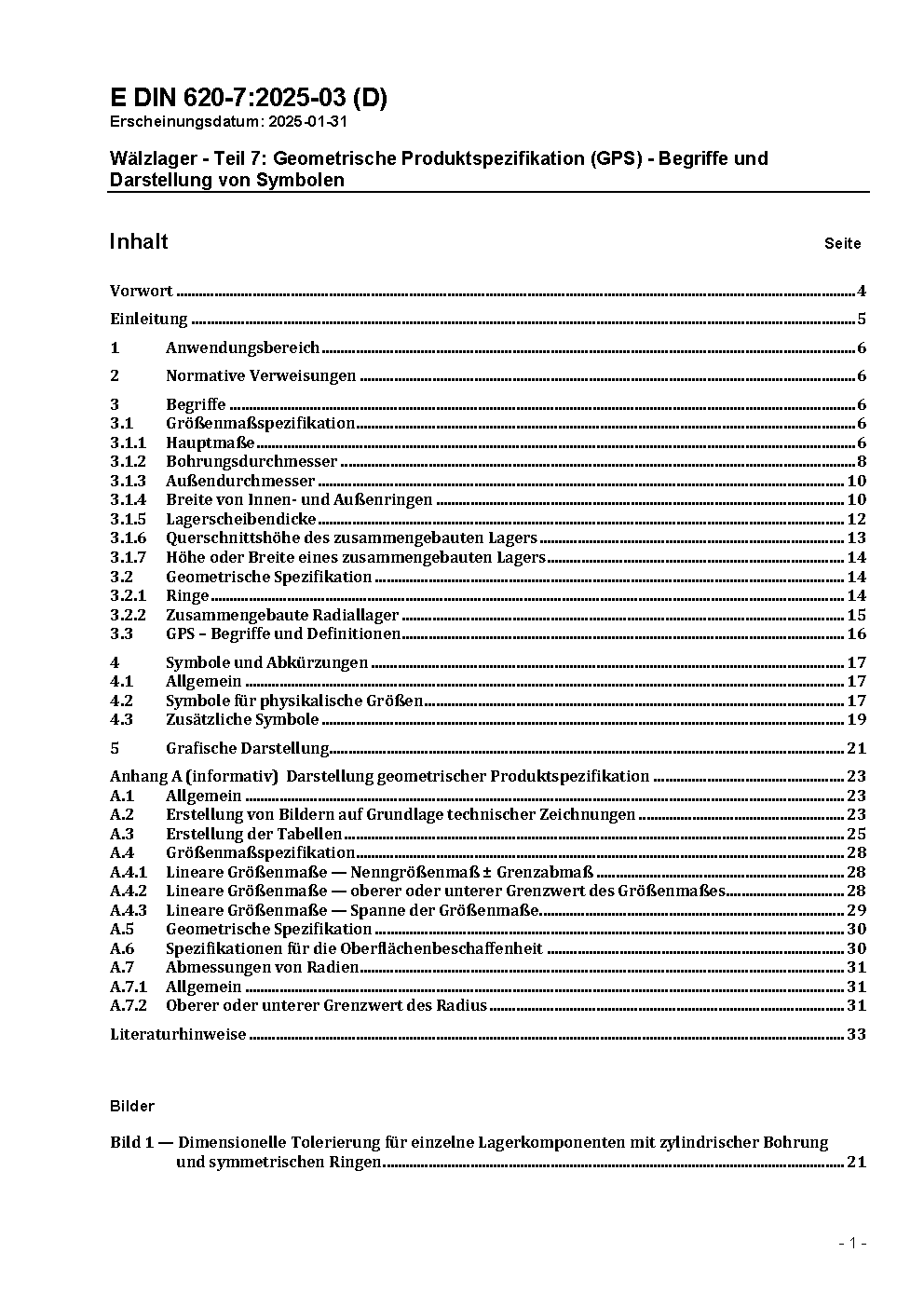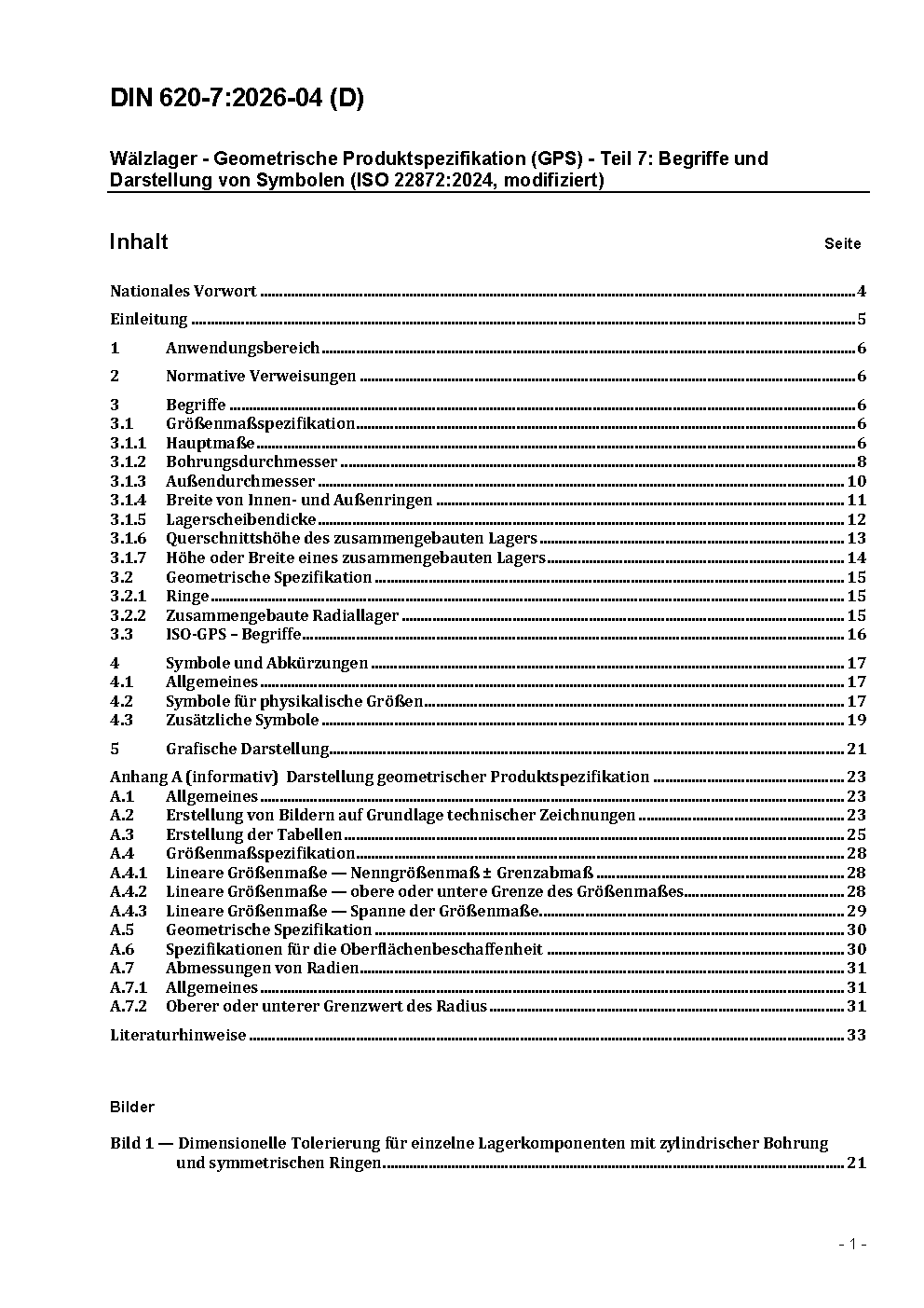 Wälzlager - Geometrische Produktspezifikation (GPS) - Teil 7: Begriffe und Darstellung von Symbolen (ISO 22872:2024, modifiziert)