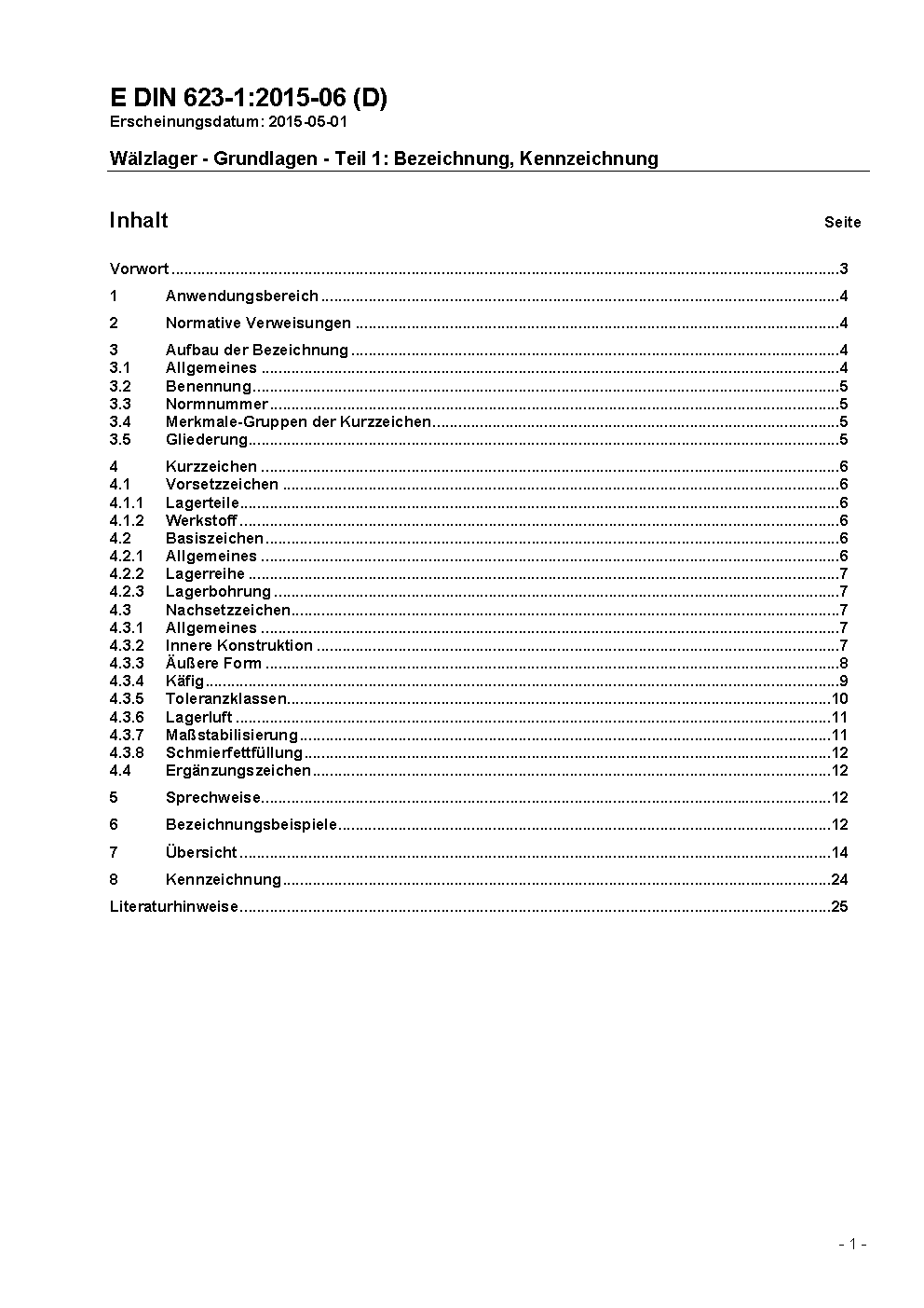 Wälzlager - Grundlagen - Teil 1: Bezeichnung, Kennzeichnung